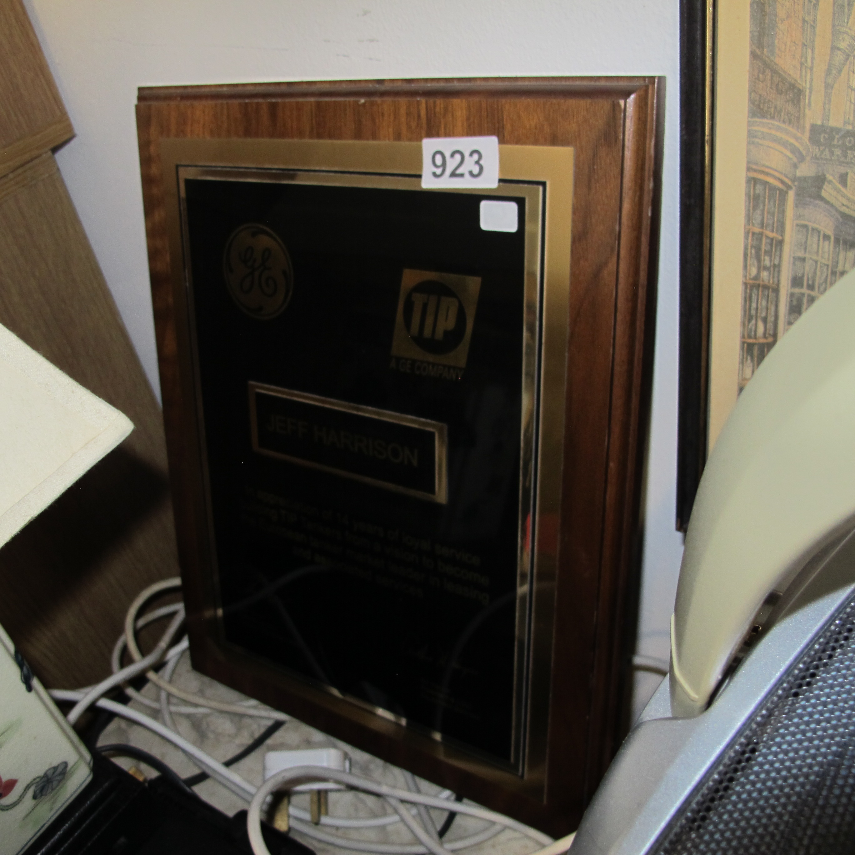 General Electric Wood and Black Commemorative Service Plaque