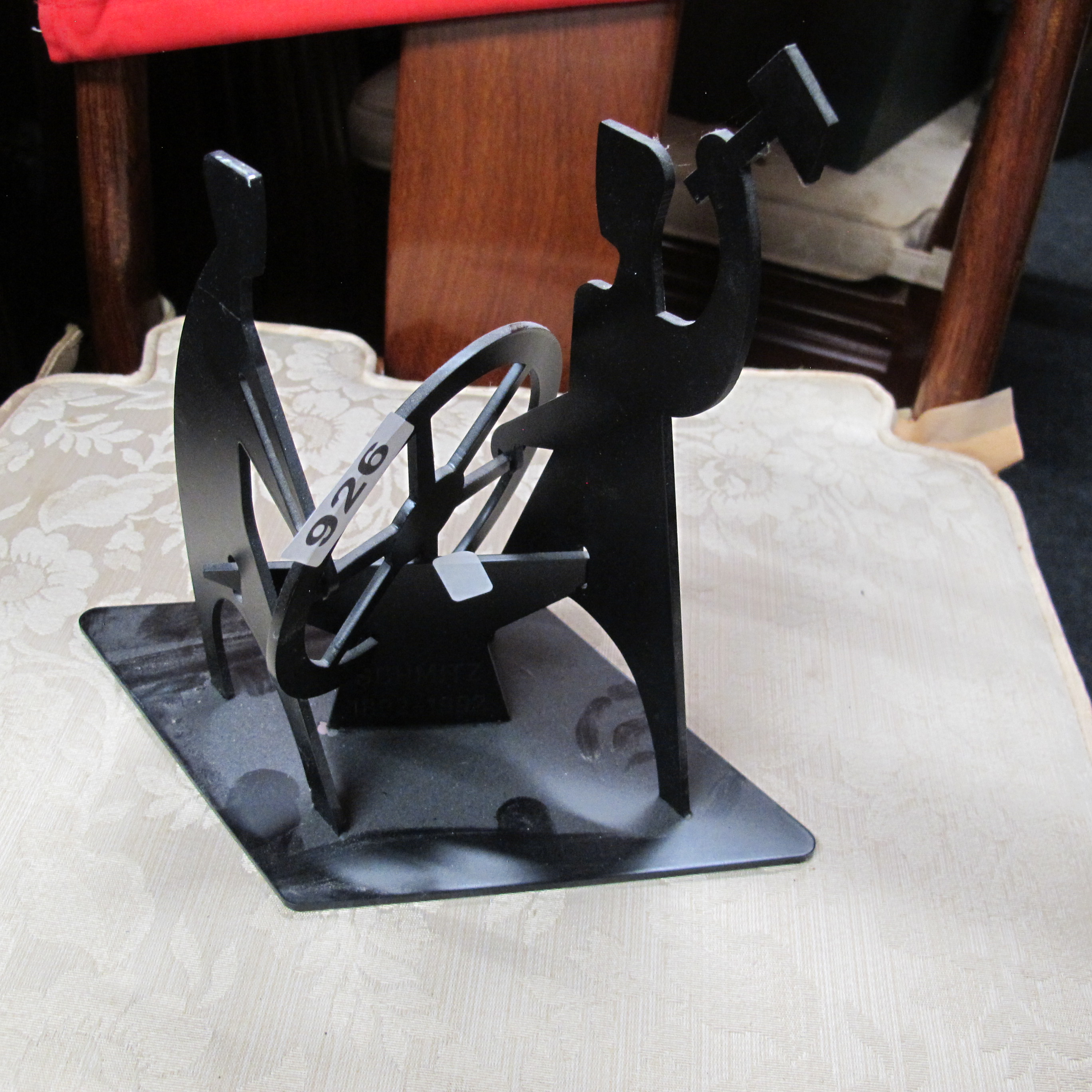 Schmitz Centenary Modernist Metal Sculpture, Industrial Labor Theme, c. 1992