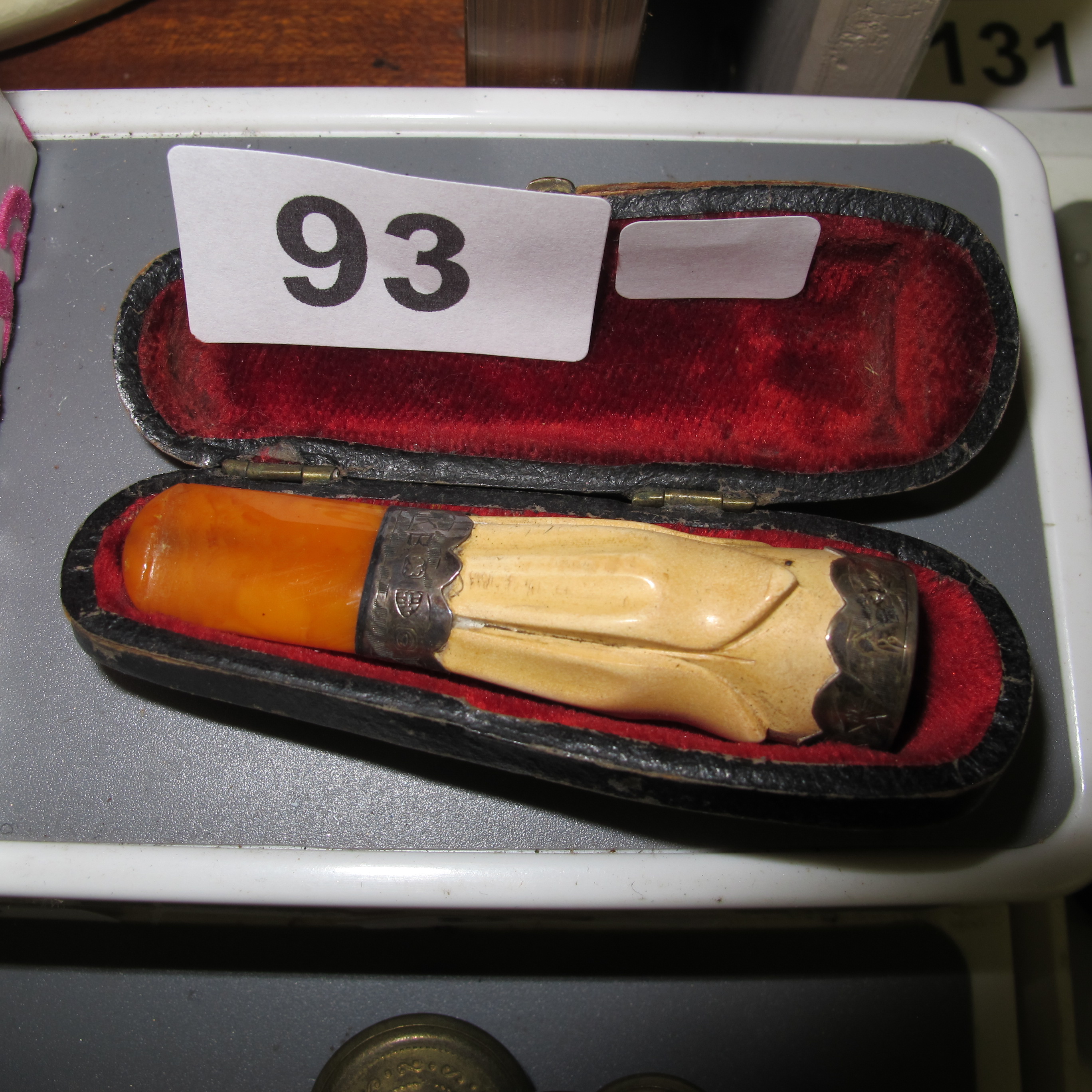 Birmingham Hallmarked Sterling Silver and Carved Meerschaum Cheroot Holder, Late Victorian