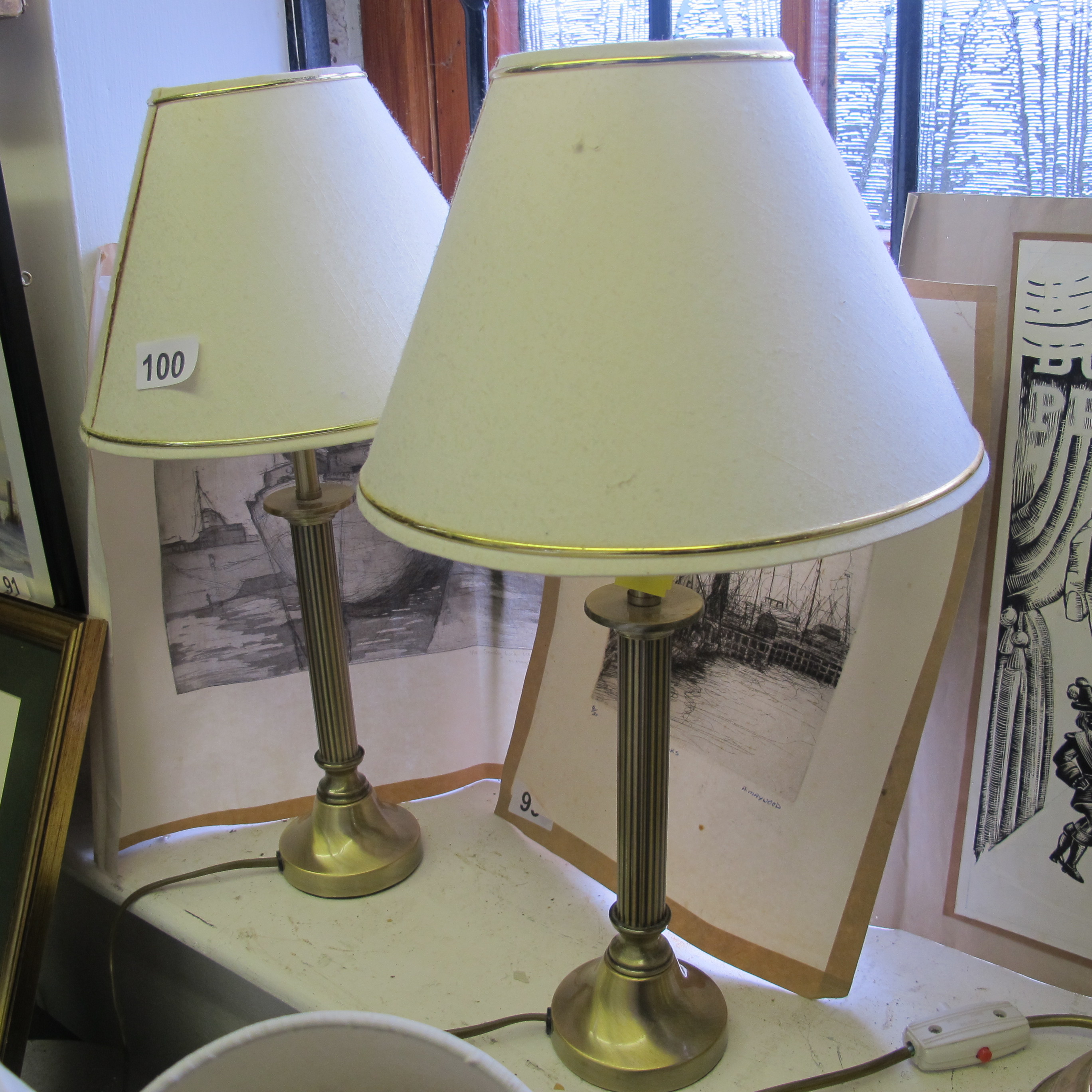 A Pair of Neoclassical Style Brass Column Table Lamps