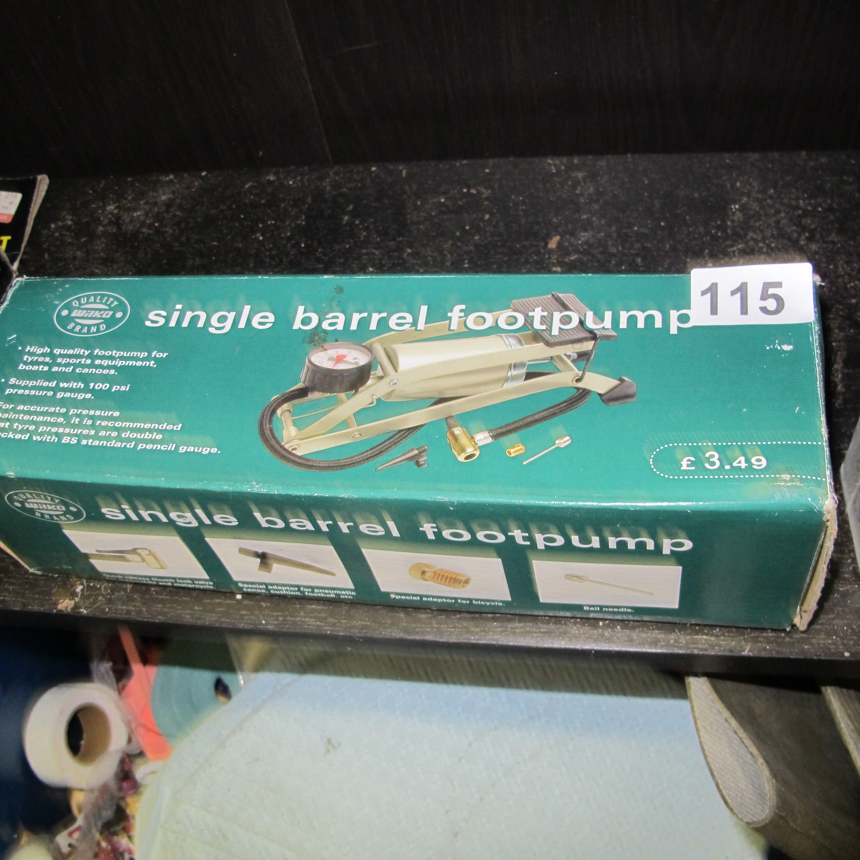 A Wilko Brand Single Barrel Foot Pump in Original Packaging