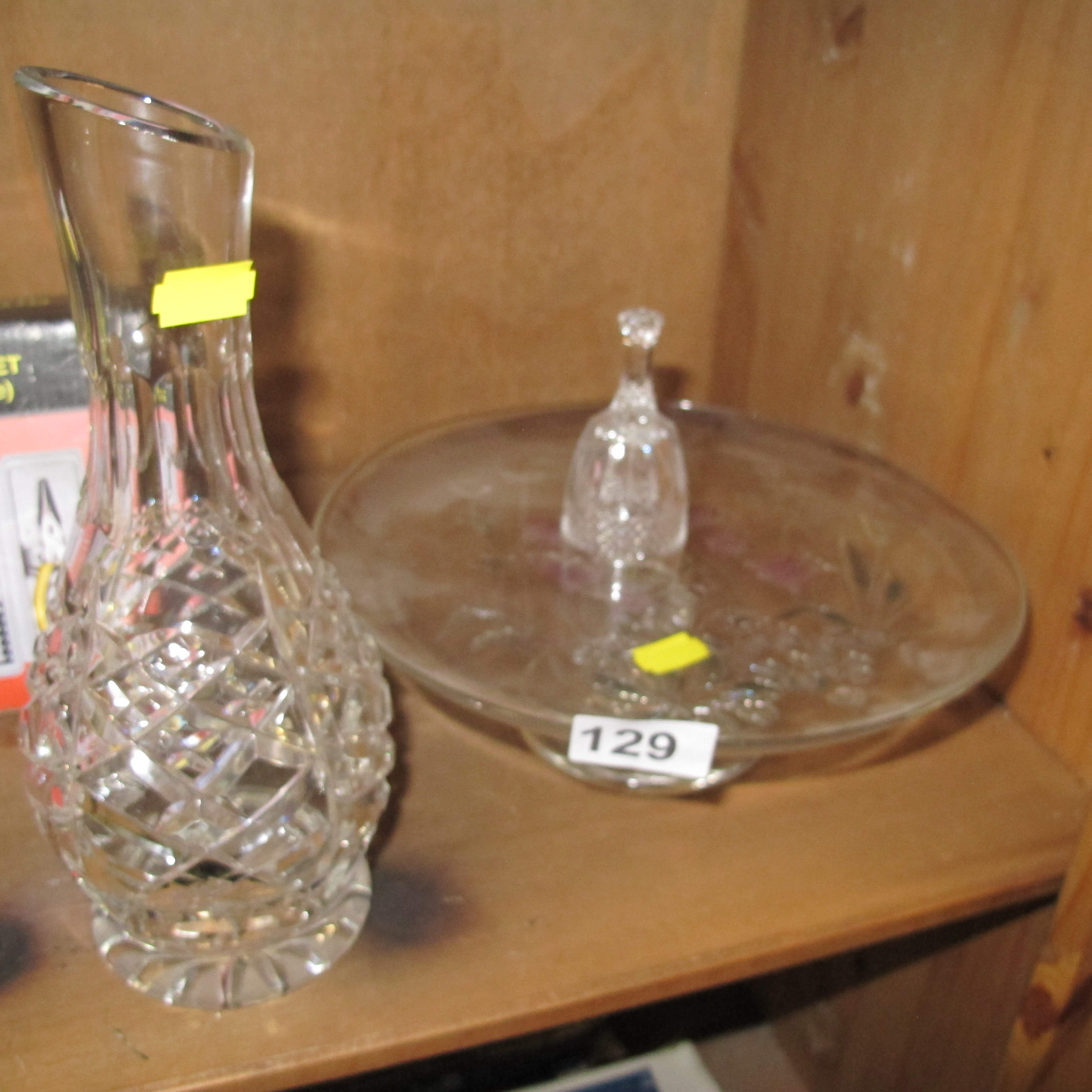 A Trio of Crystal and Glass Decorative Items Including a Waterford Powerscourt Carafe