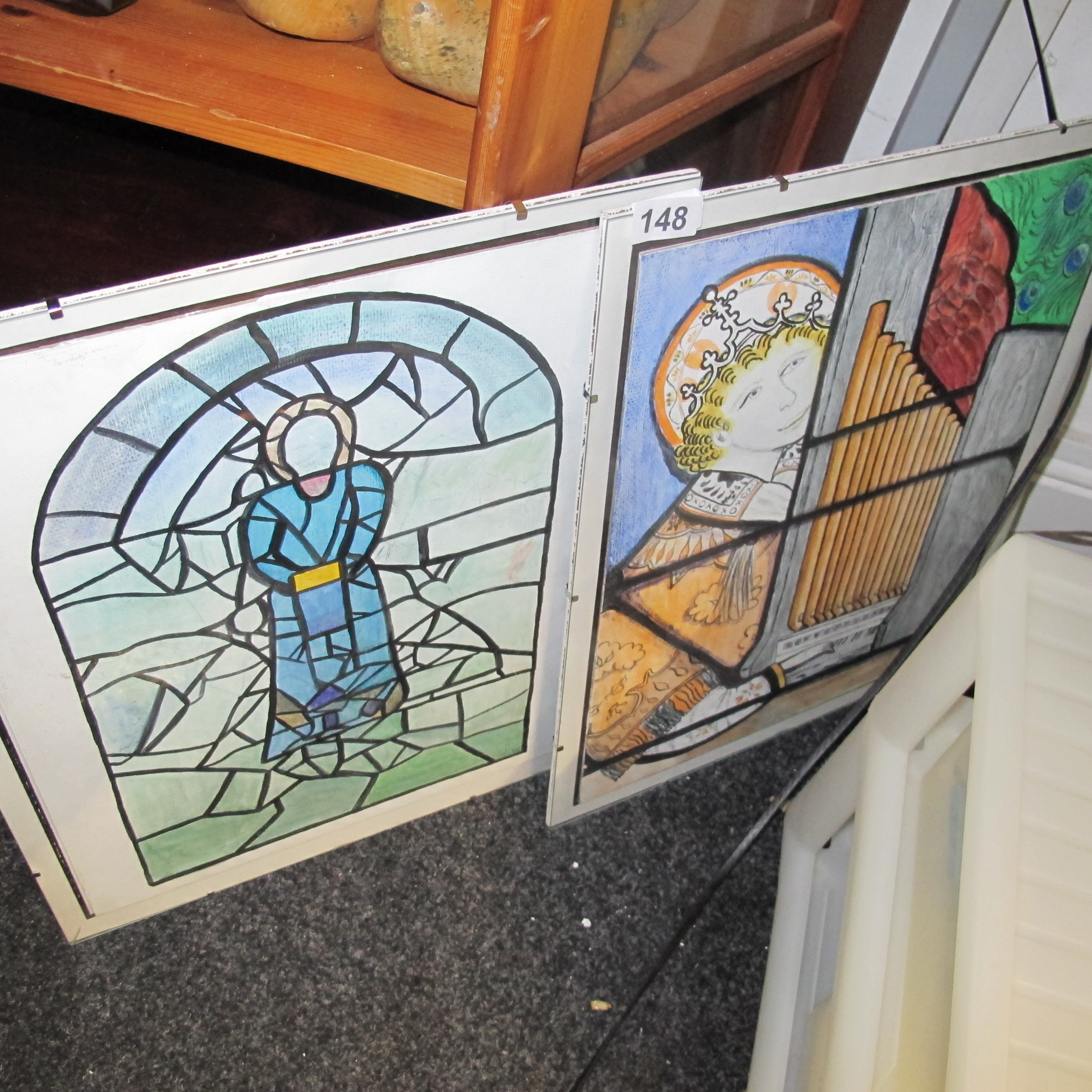 A Pair of Framed Stained Glass Window Design Drawings