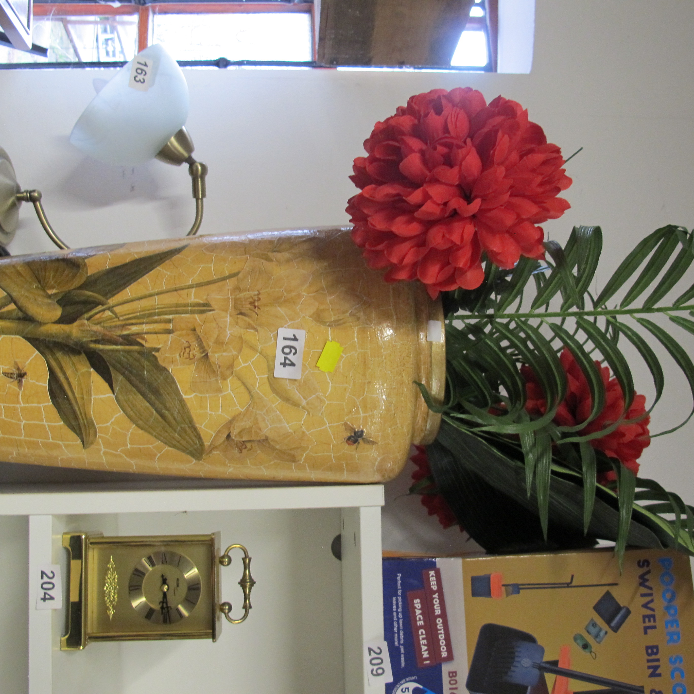 A Collection of Household Items and Decorative Objects Including a Ceramic Vase, Mantel Clock, and Wall Lamp
