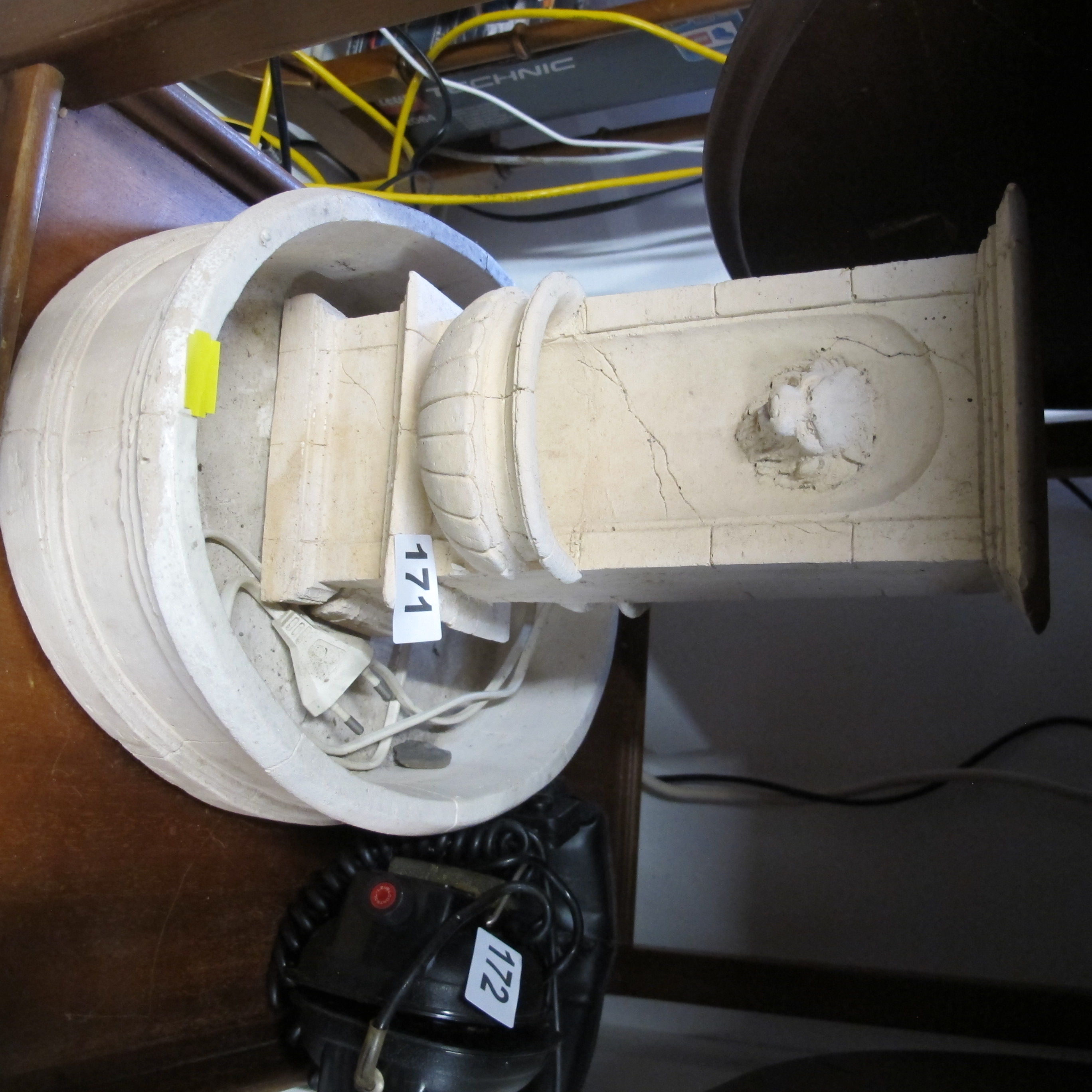 Two Items Comprising a Neo-Classical Style Tabletop Electric Fountain and an Electronic Device