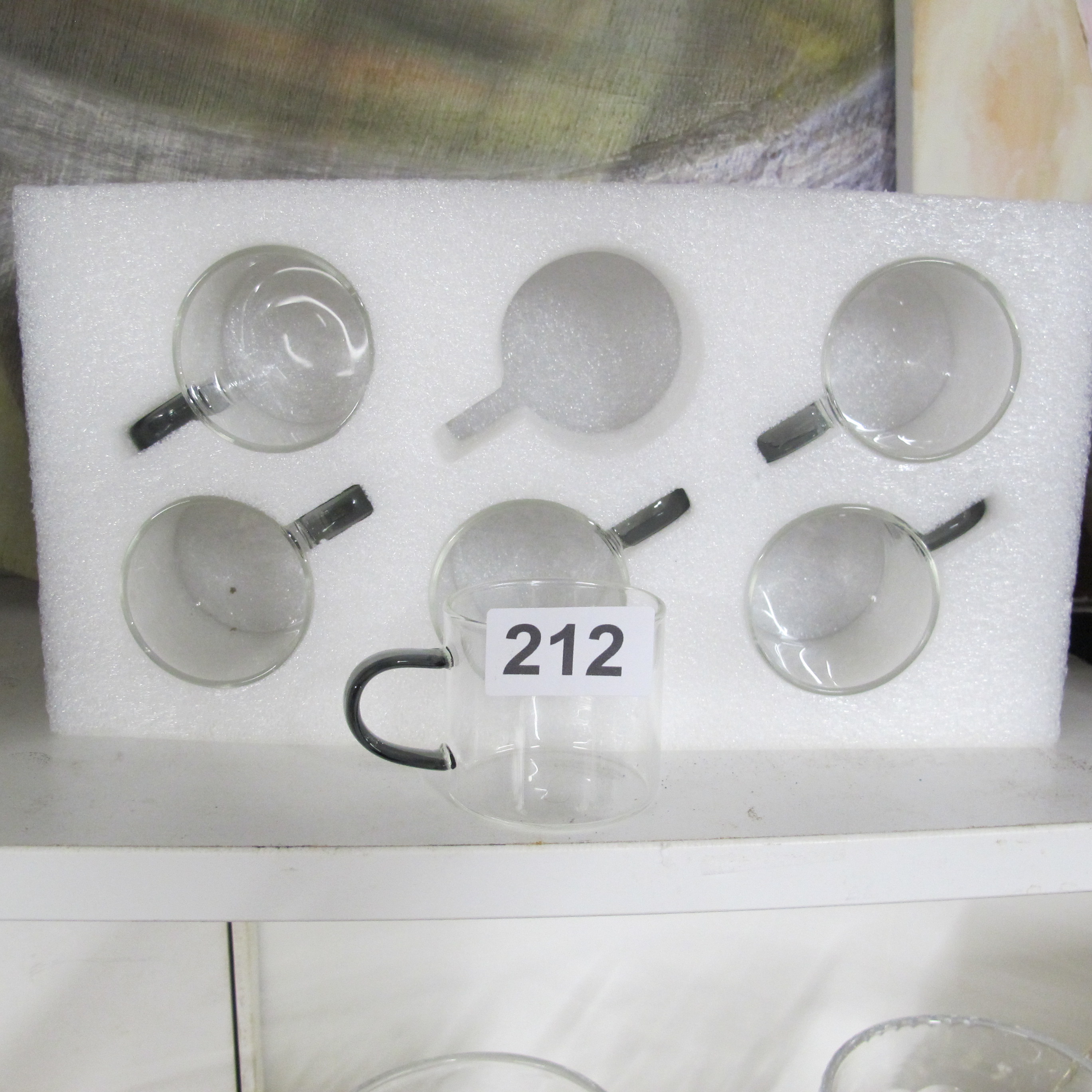 A Set of Modernist Glass Espresso Cups with Contrasting Handles