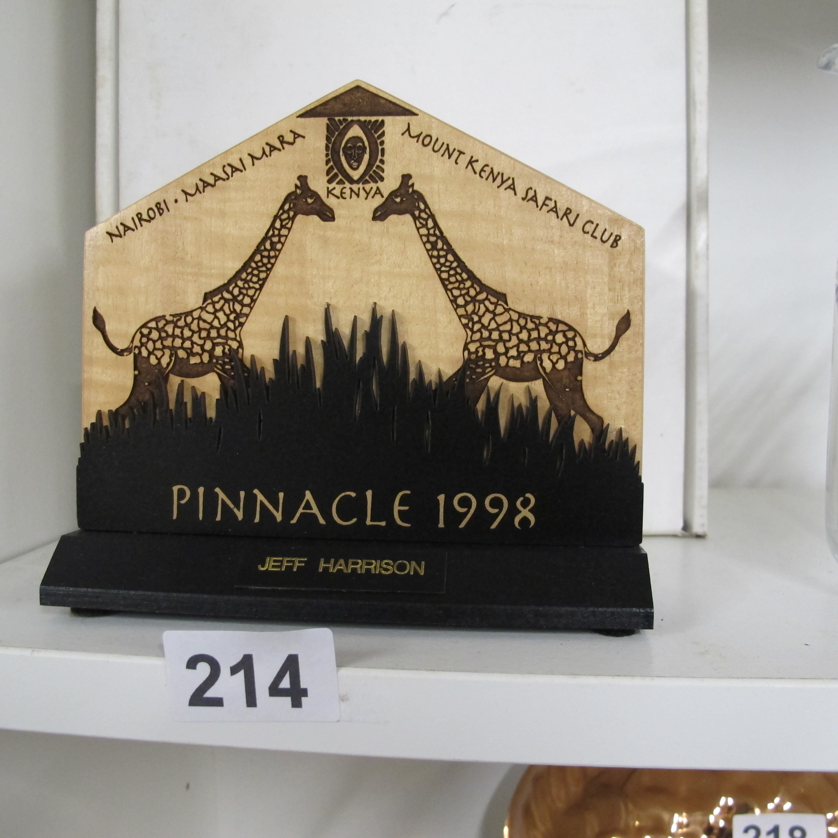 Mount Kenya Safari Club Pinnacle 1998 Commemorative Wooden Plaque