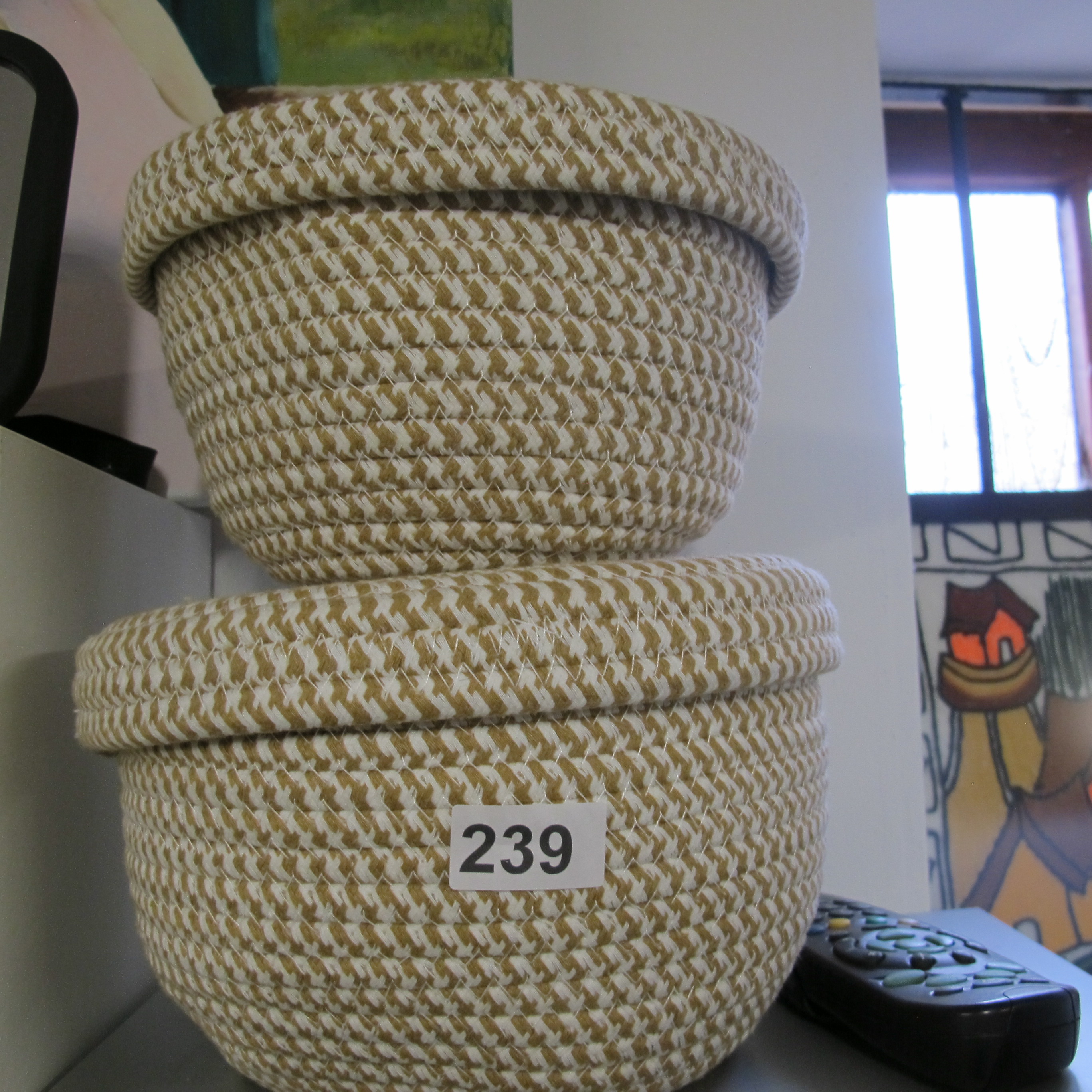 A Pair of Cotton Rope Woven Storage Baskets with Lids