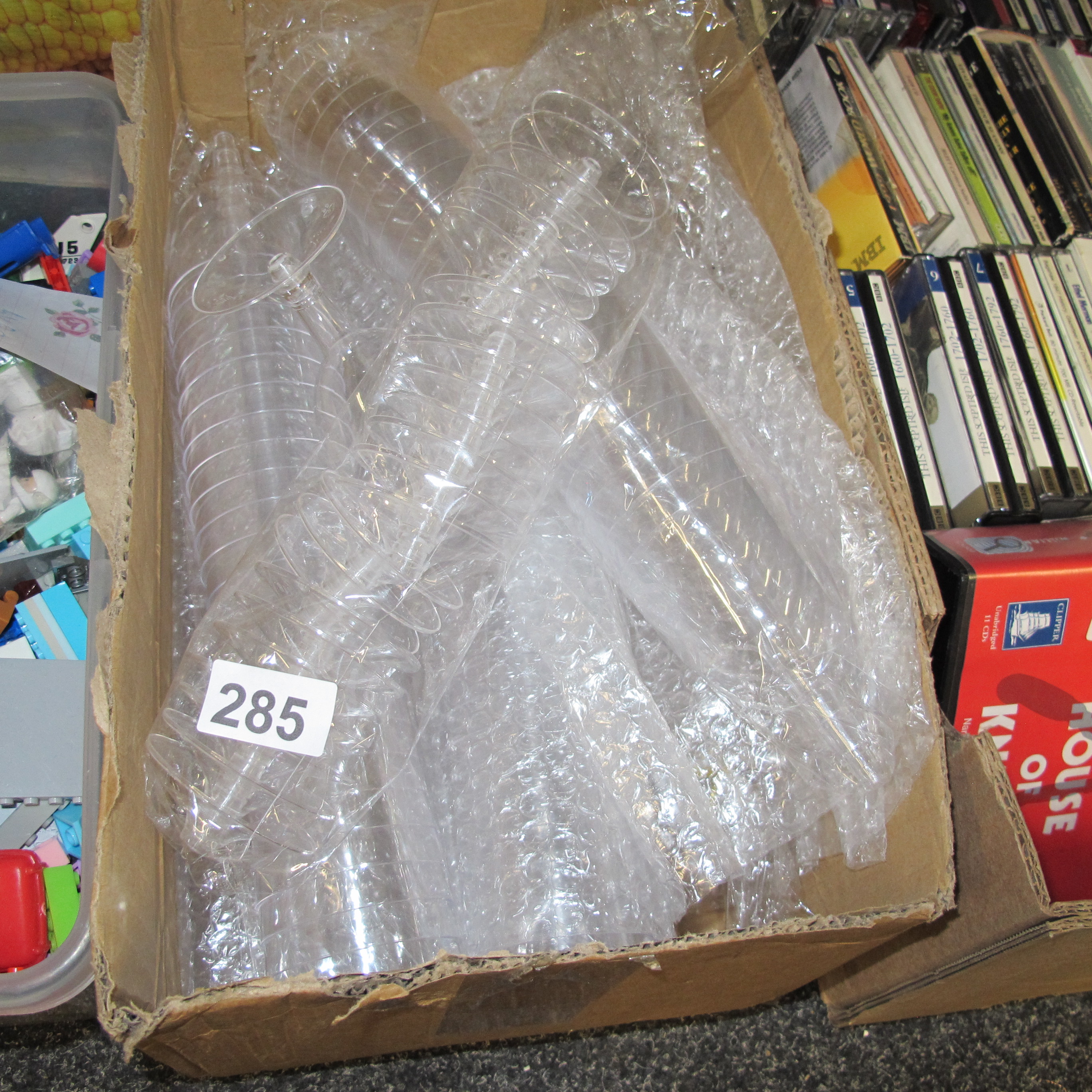 A Collection of Clear Plastic Disposable Champagne Flutes