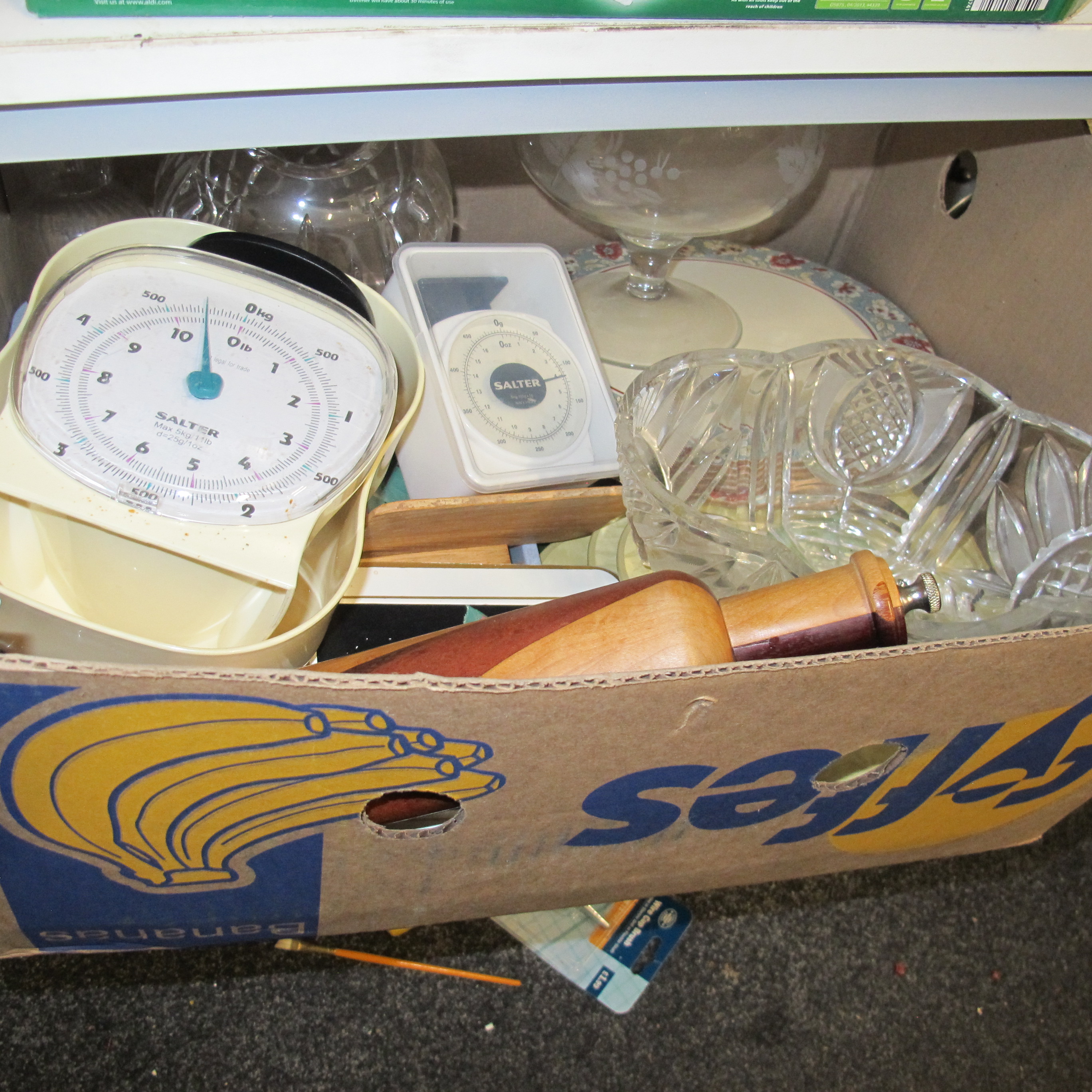 An Assortment of Kitchen and Household Items Including Salter Kitchen Scales