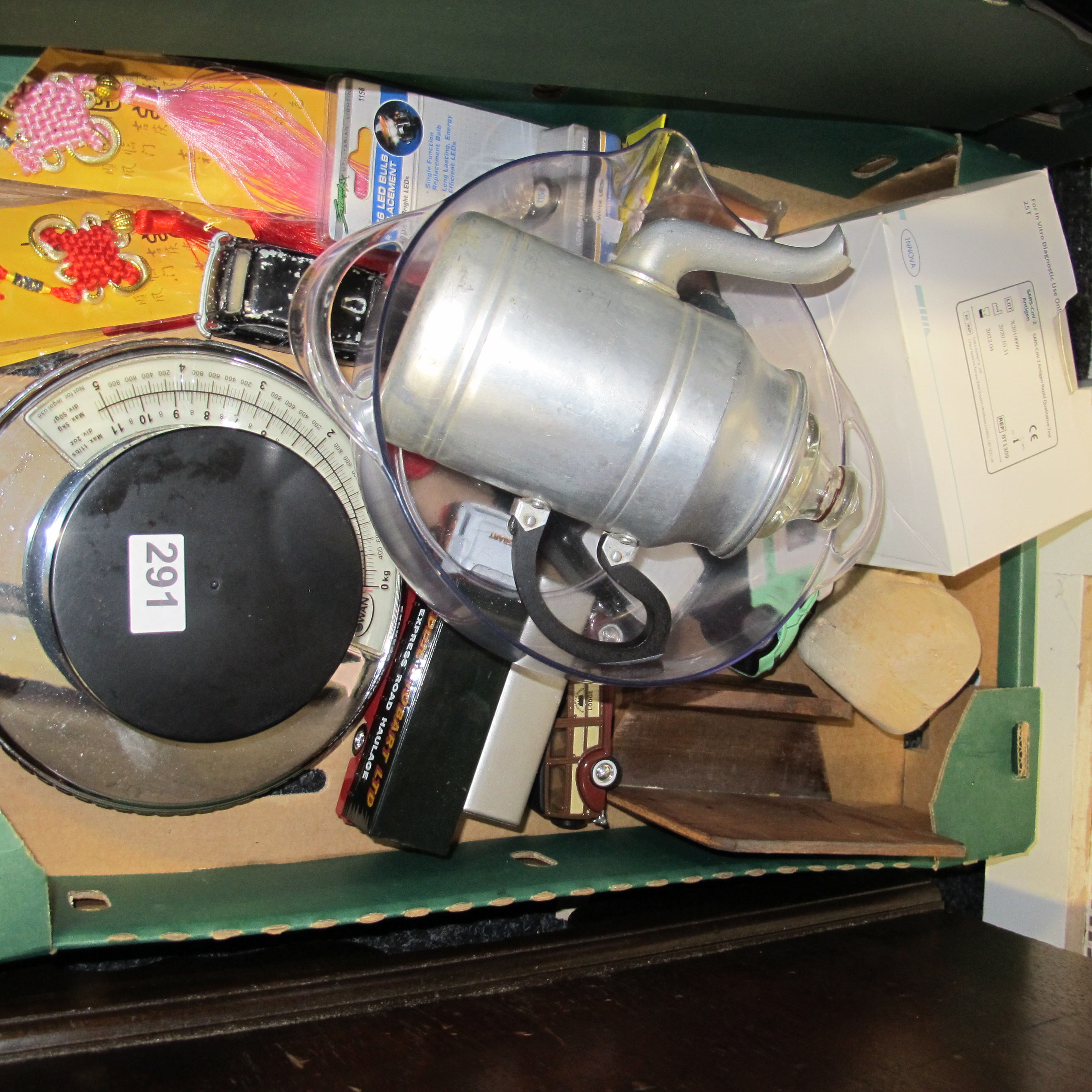 An Assortment of Household Items and Collectibles Including a Swan Kitchen Scale and Coffee Percolator