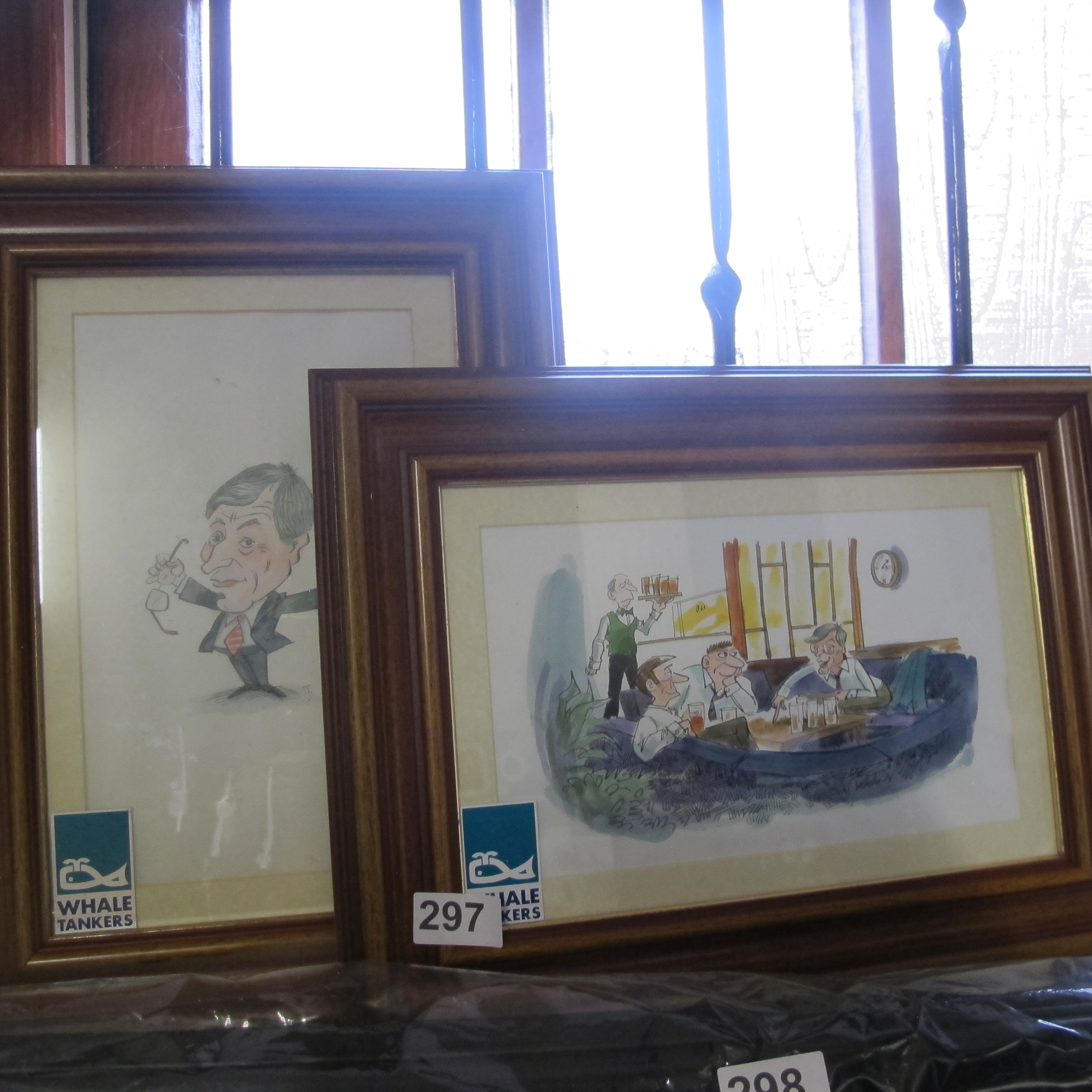A Group of Framed Original Watercolor Caricatures and Narrative Scenes