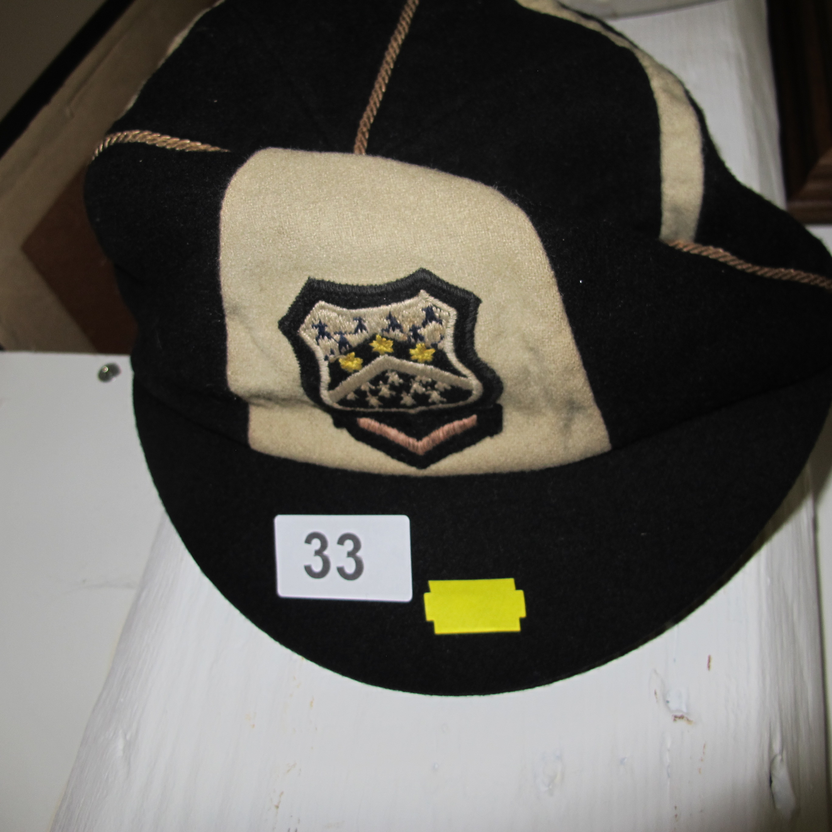 Vintage English Wool School or Cricket Cap with Embroidered Crest