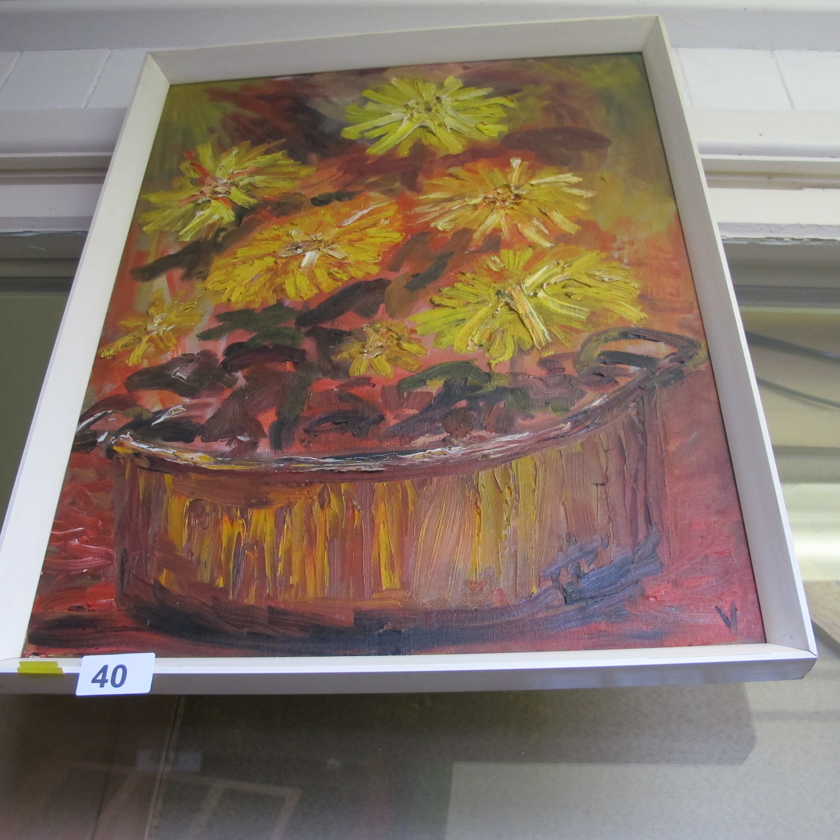 An Expressionistic Still Life Oil Painting of Yellow Flowers