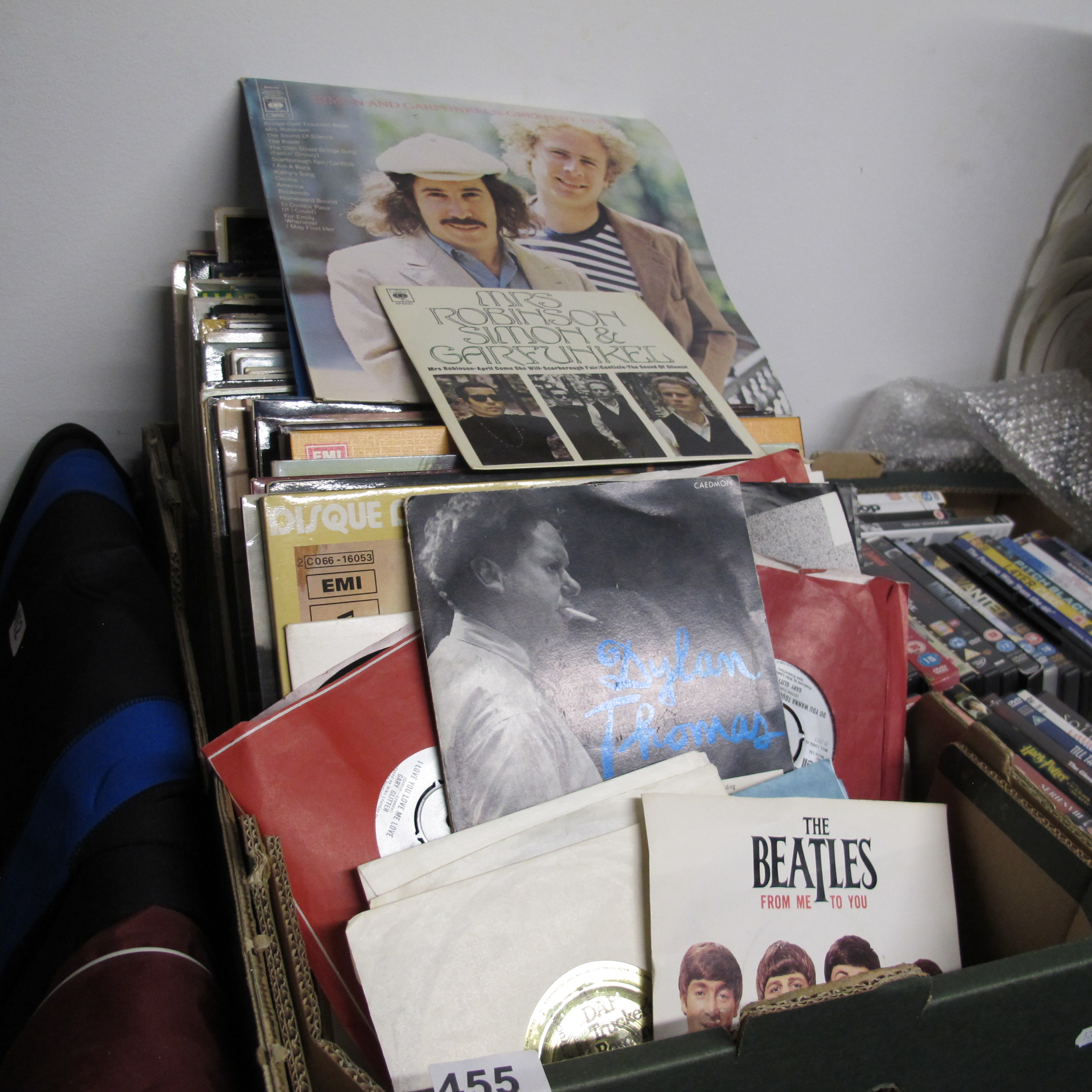 A Collection of Vintage Vinyl Records and DVDs Including Simon and Garfunkel Mrs. Robinson EP