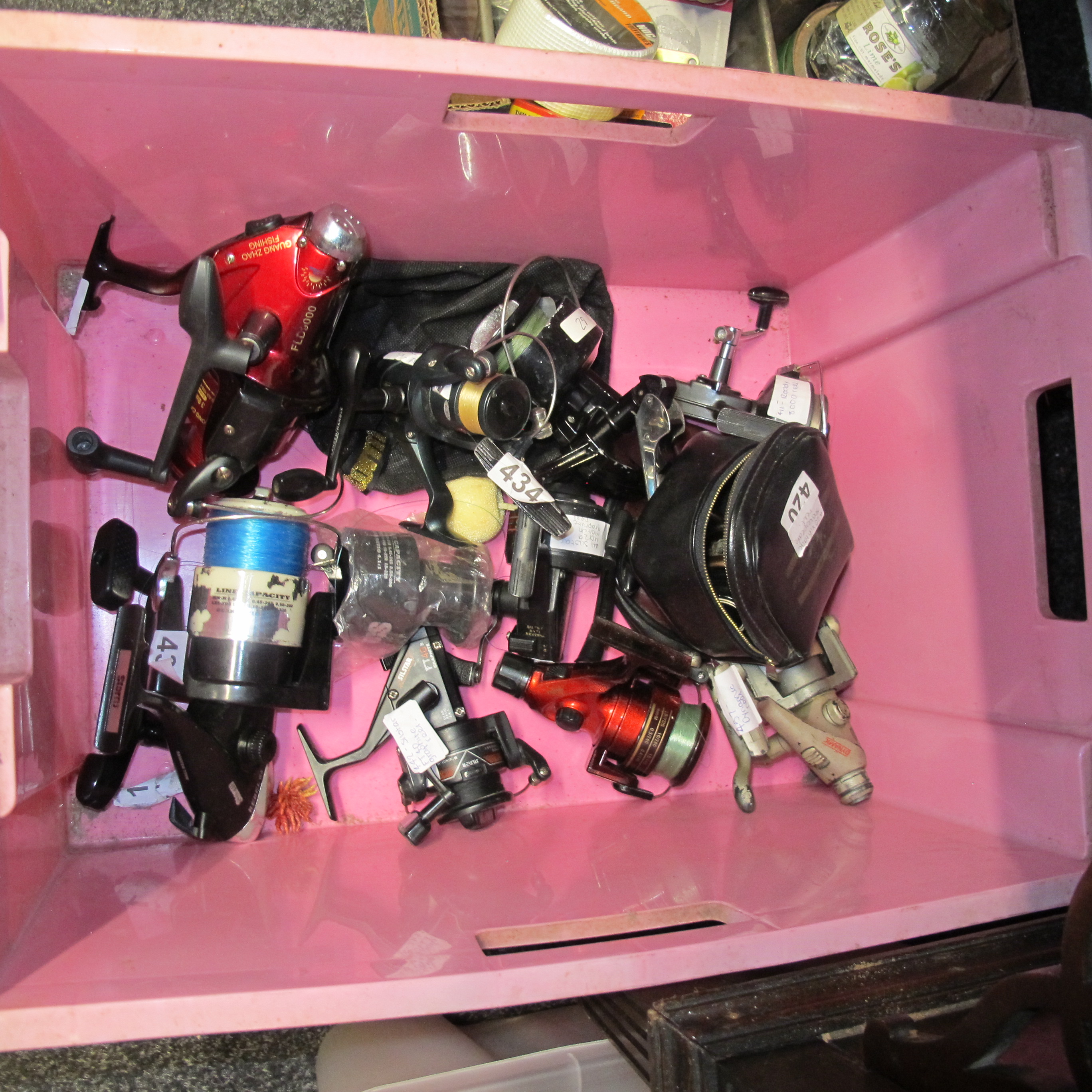 An Assortment of Fixed Spool Fishing Reels and Accessories