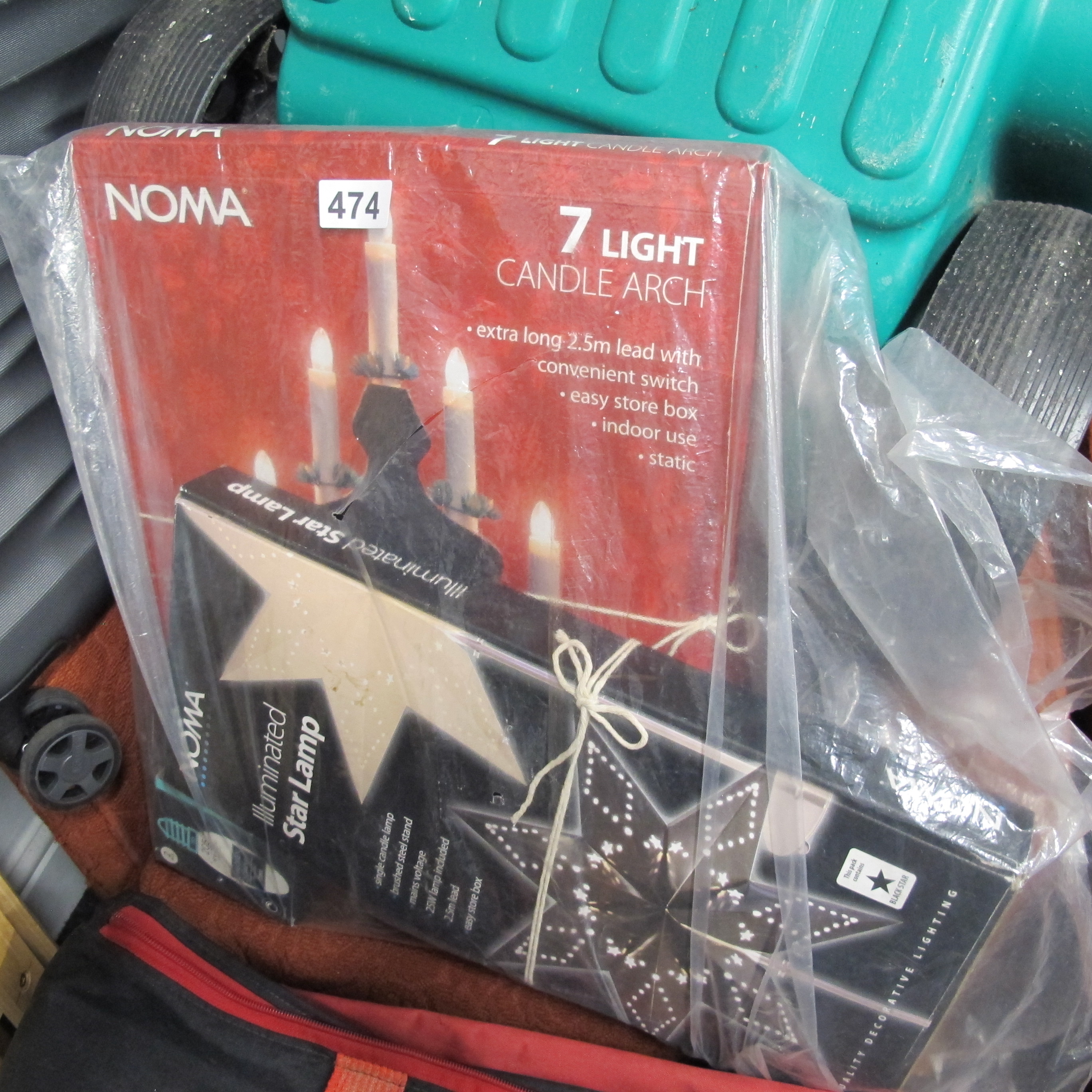 Two NOMA Holiday Lighting Items Including a 7 Light Candle Arch and an Illuminated Star Lamp