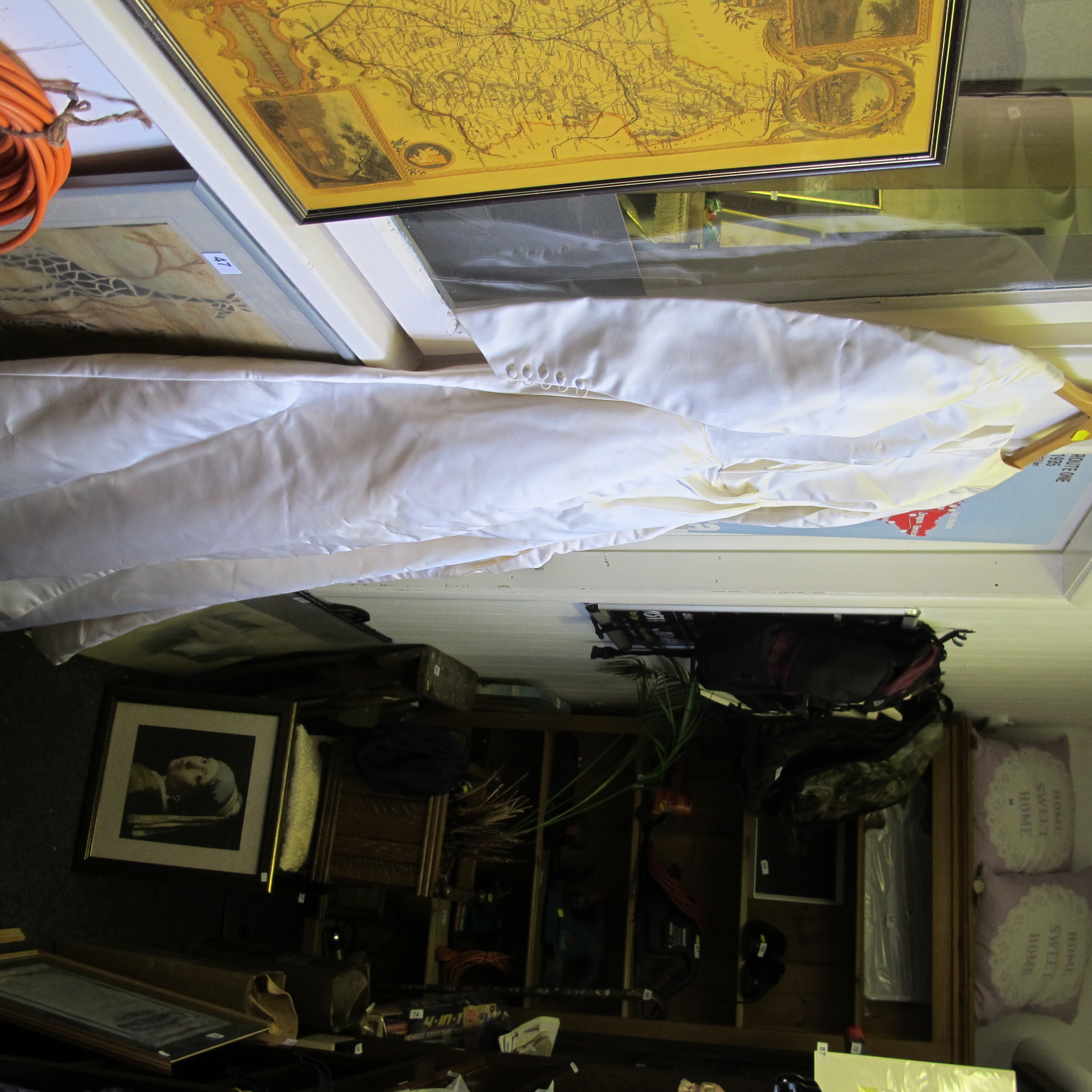 A Collection of Decorative Arts, Household Items, and a Long-Sleeved Wedding Gown