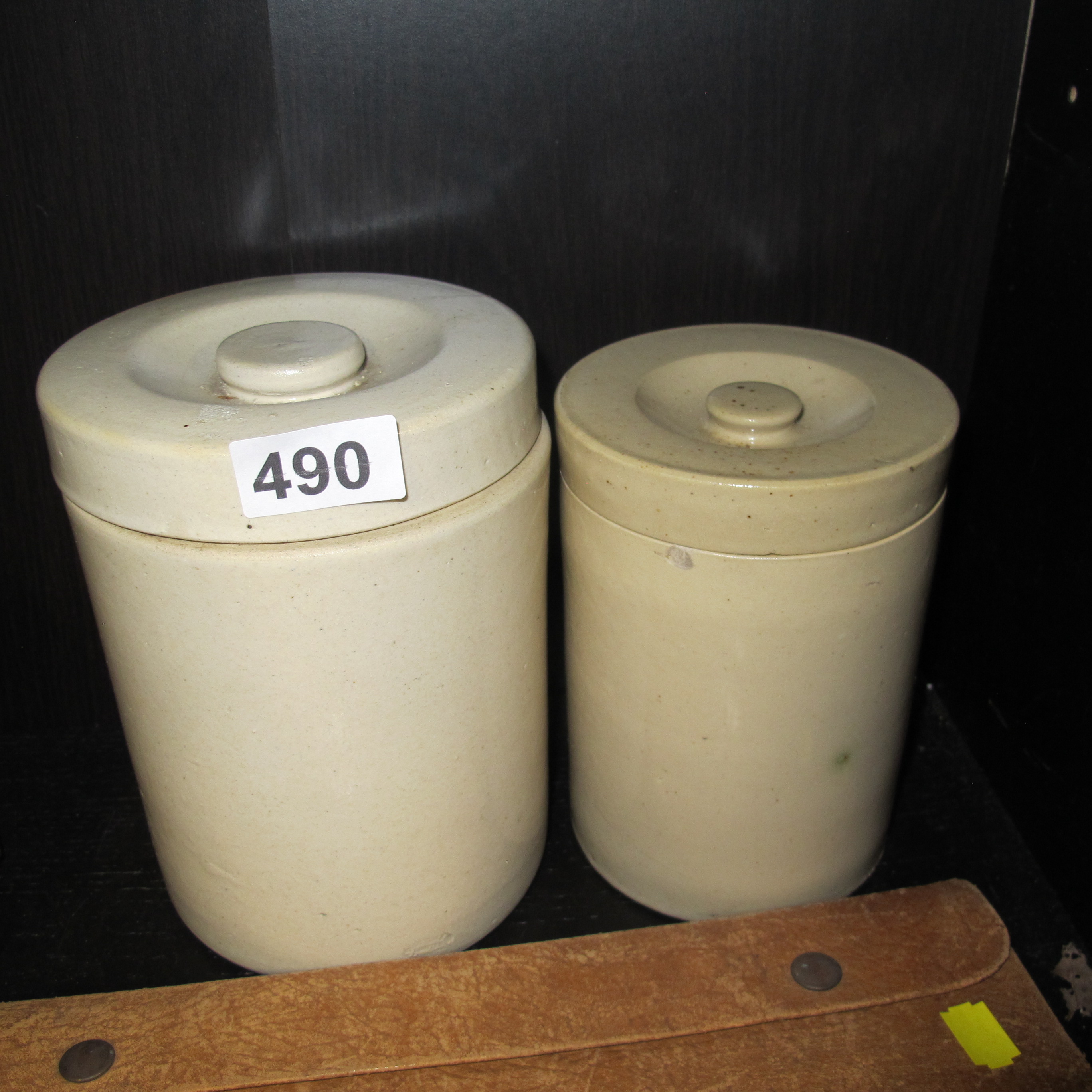 A Pair of Crème Glazed Stoneware Pickling Crocks with Lids