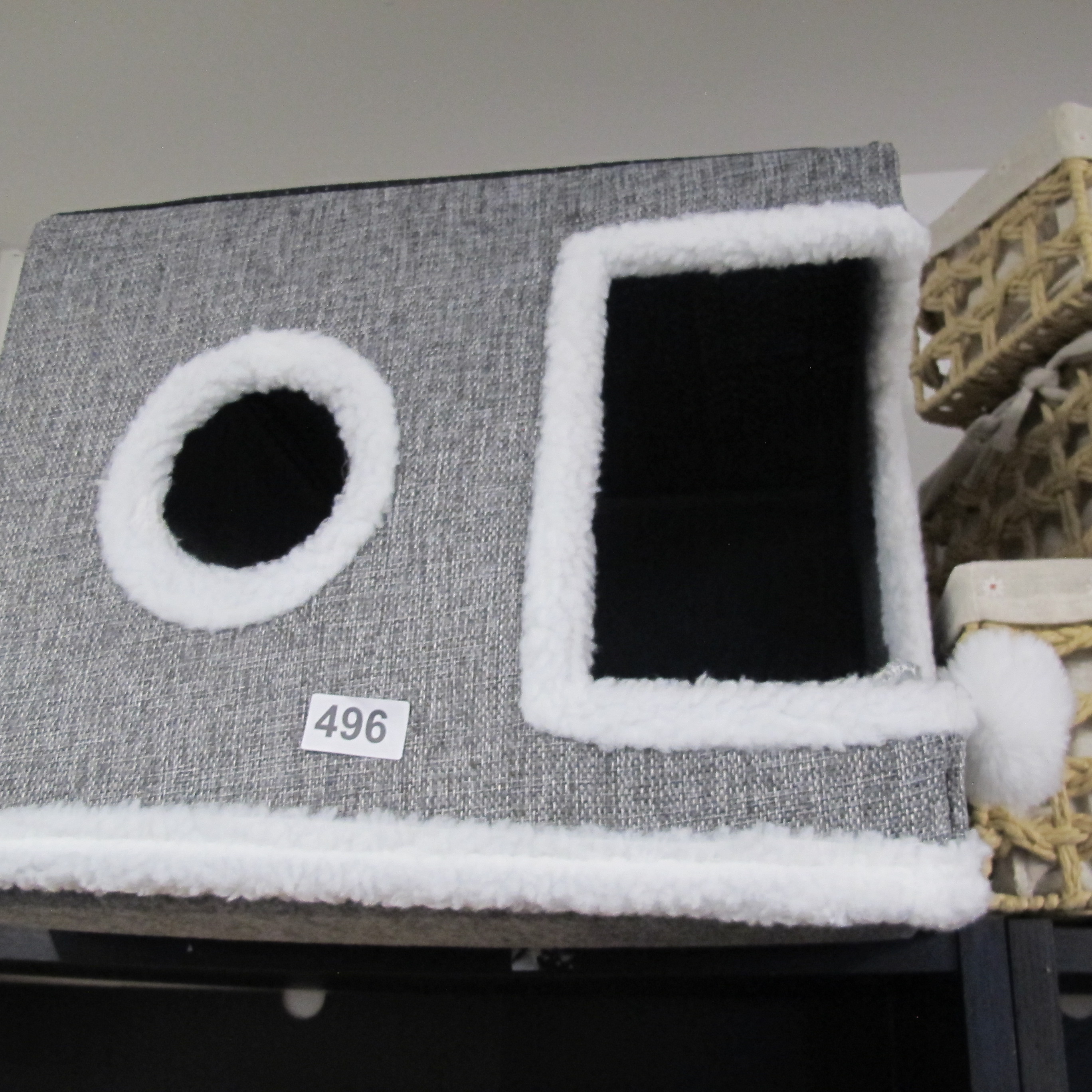 A Foldable Cat Cube House and a Collection of Woven Storage Baskets