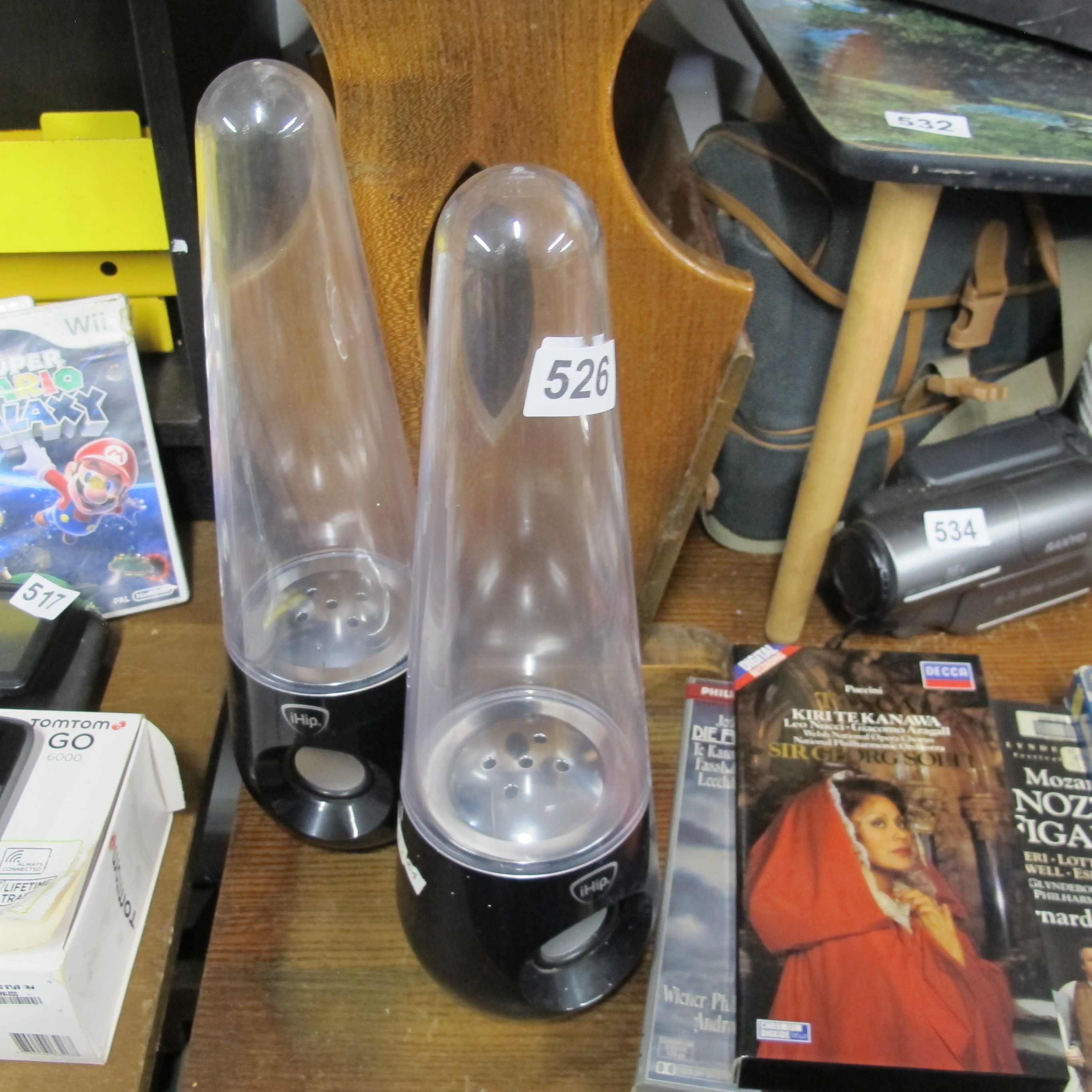 A Collection of Modern Electronics and Media Including iHip Dancing Water Speakers