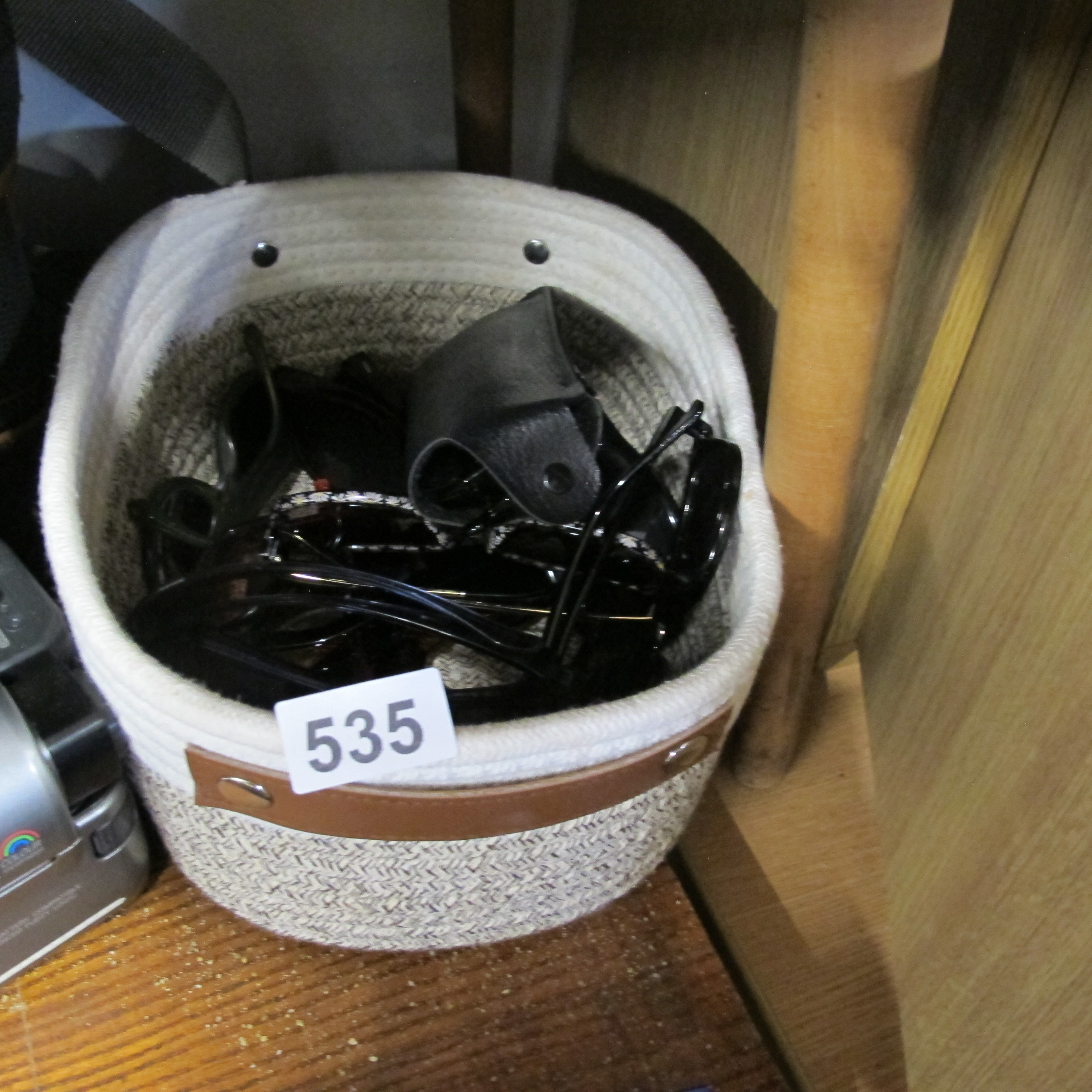 A Cotton Rope Storage Basket Containing a Collection of Eyewear and Accessories