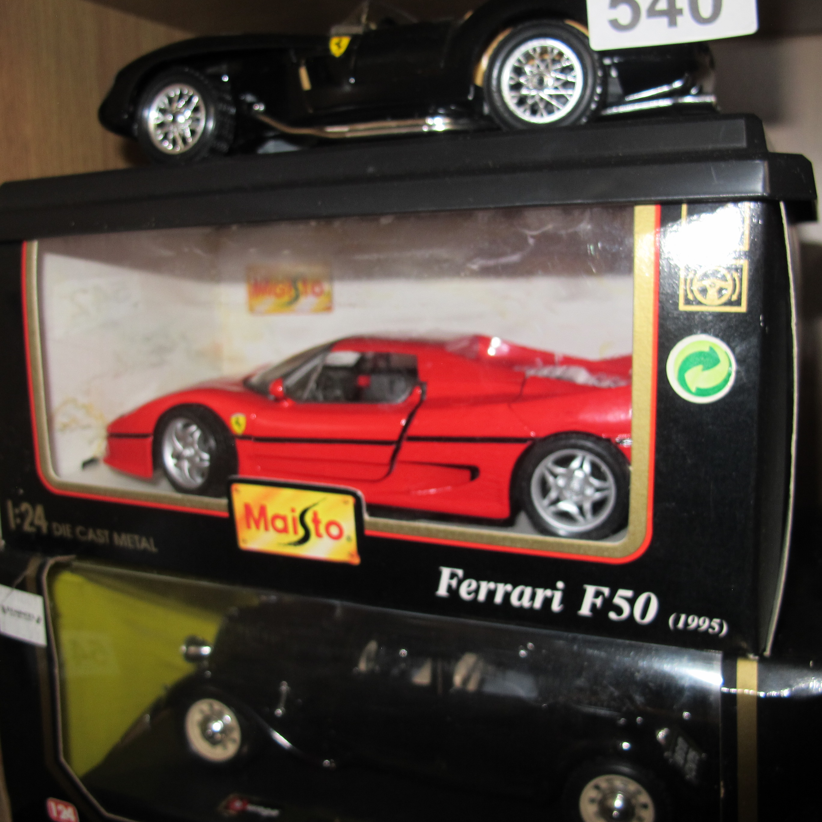 A Trio of Die-Cast Model Cars Including a Maisto Ferrari F50