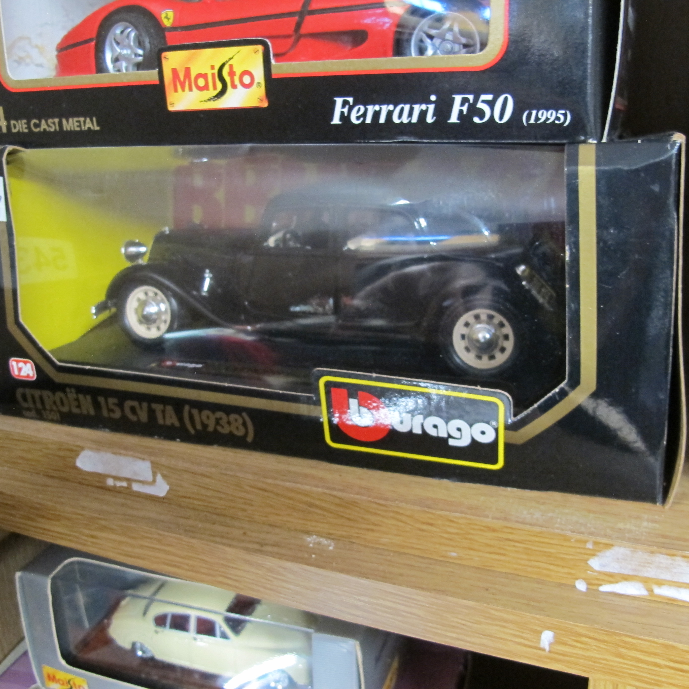 A Collection of Die-Cast Model Cars Including Solido Humphrey Bogart 1934 Ford and Burago Citroen 15 CV TA