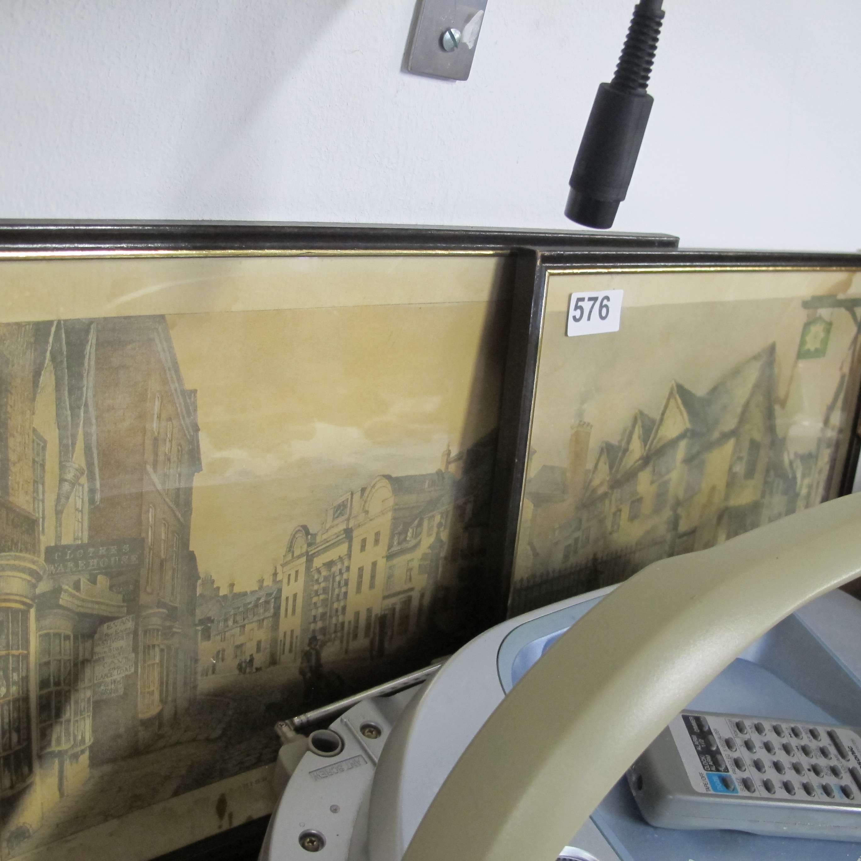 A Collection of Framed Topographical Prints and a Portable Stereo Unit
