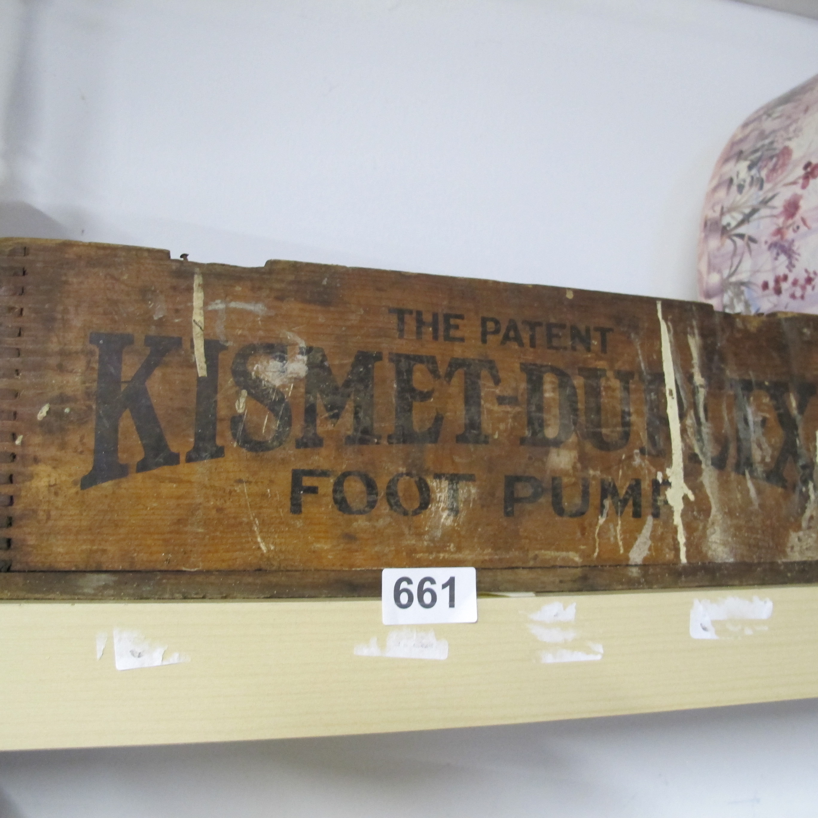 A Vintage Kismet-Duplex Foot Pump Wooden Box Panel