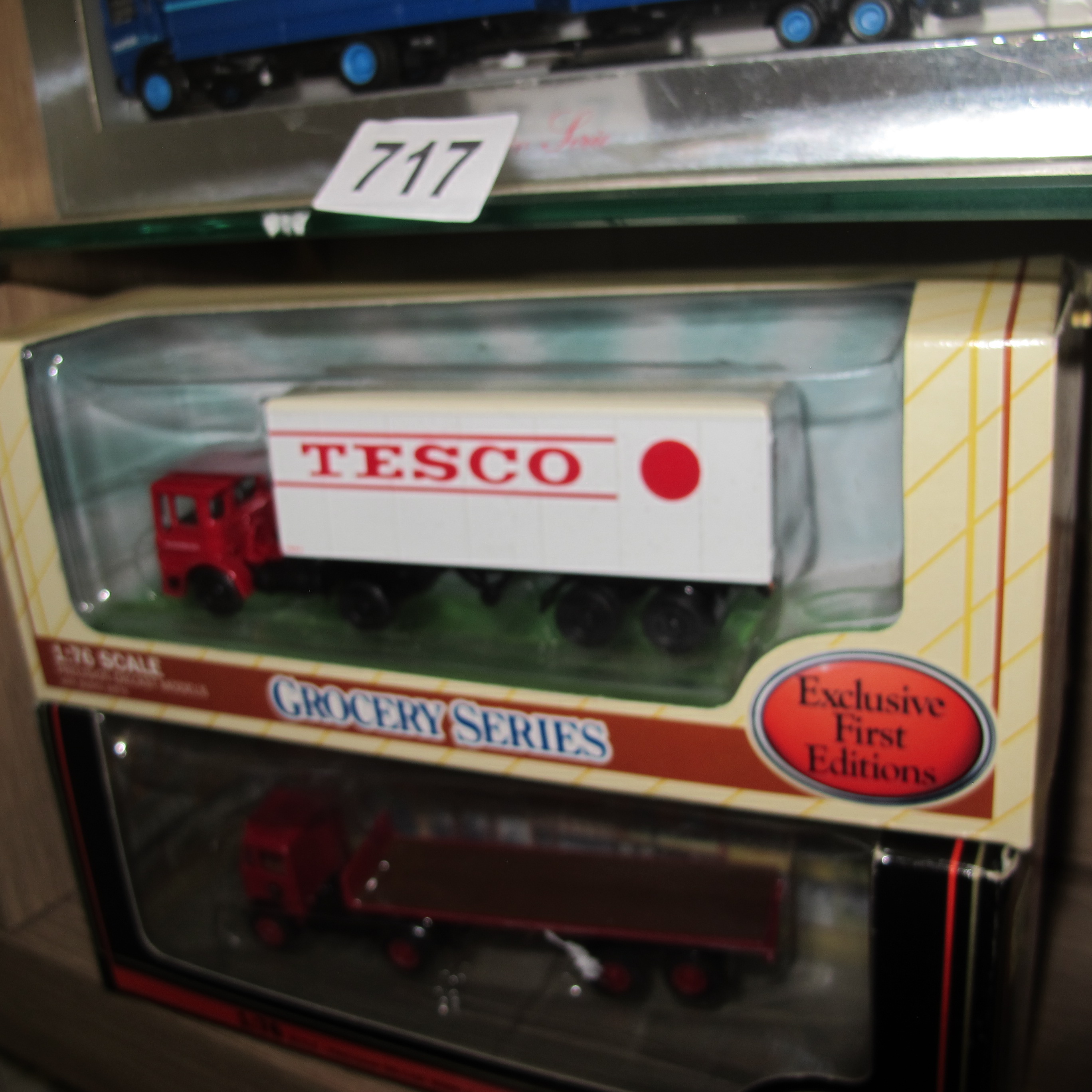 A Trio of Exclusive First Editions EFE 1:76 Scale Die-Cast Model Commercial Vehicles including a Leyland Beaver Articulated Box Trailer in Tesco Livery