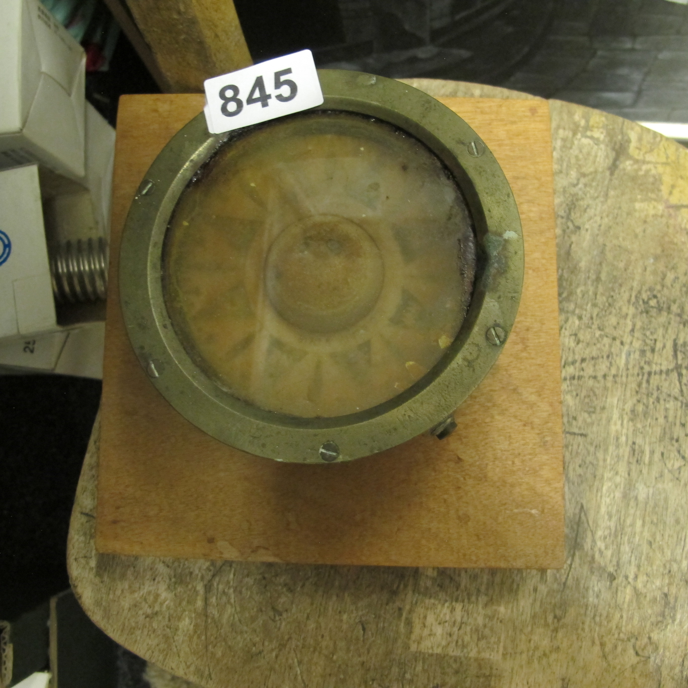 A Vintage Brass Nautical Compass on Wooden Plinth