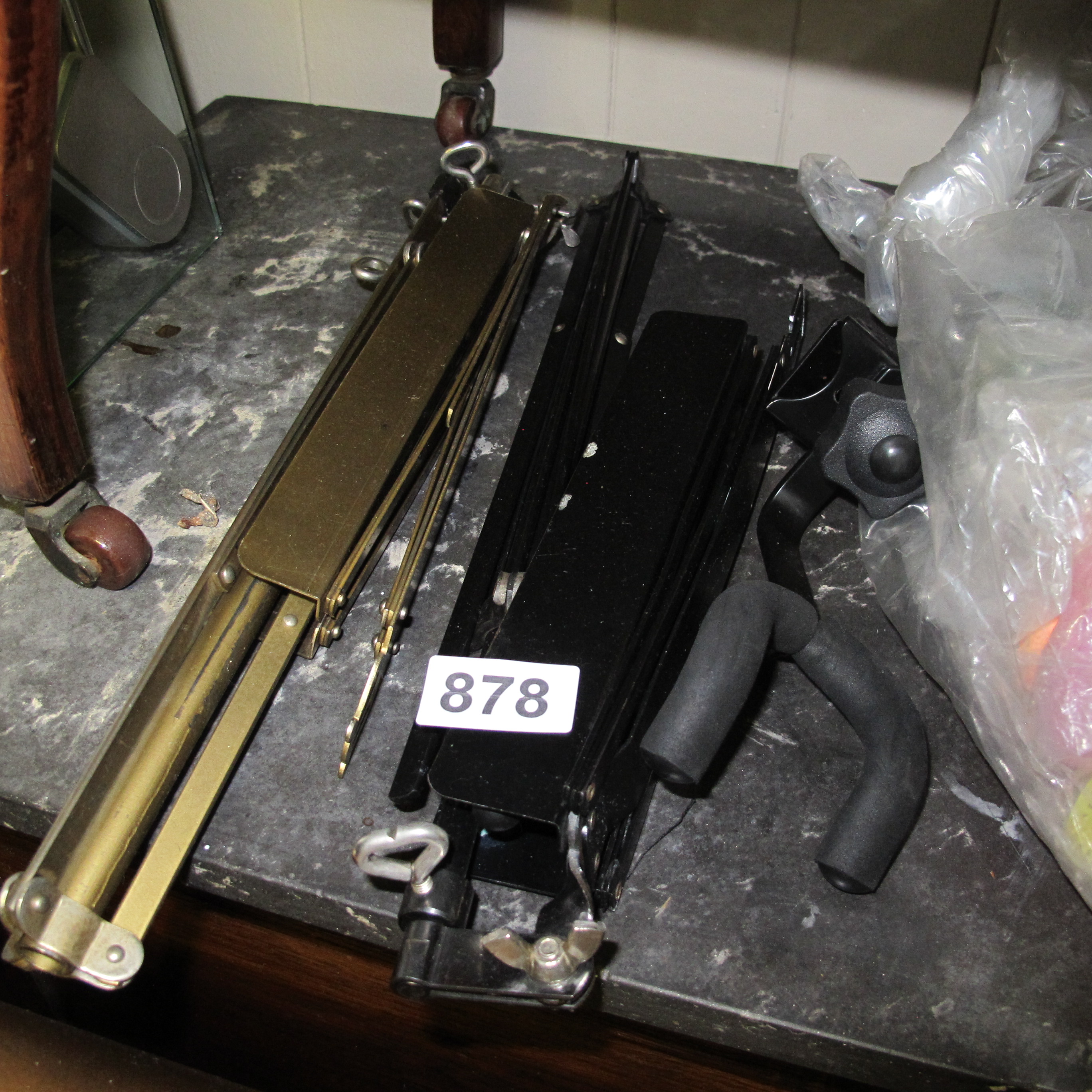 A Collection of Folding Metal Equipment Stands and Accessories