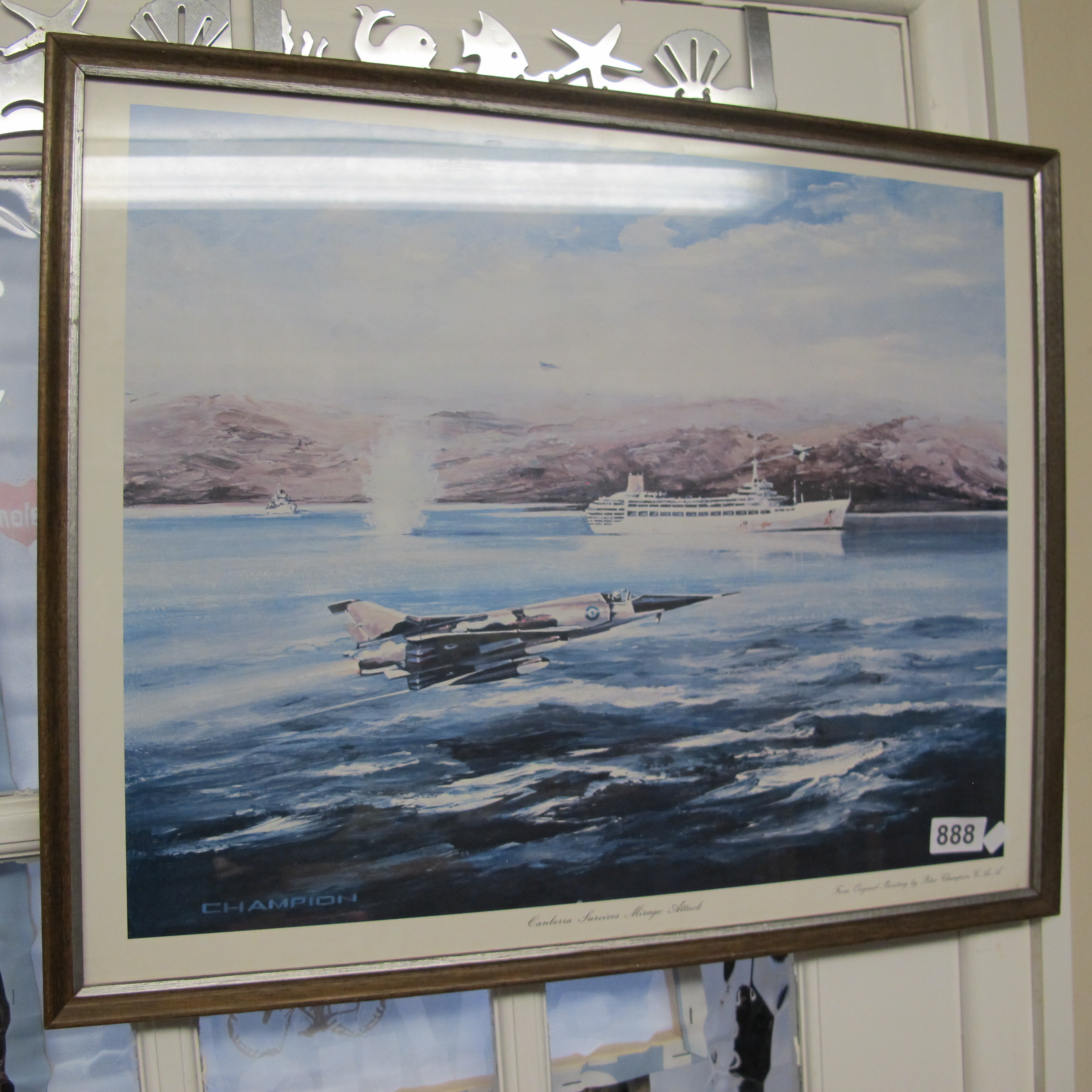 A Framed Aviation Print Titled Canberra Survives Mirage Attack After Peter Champion
