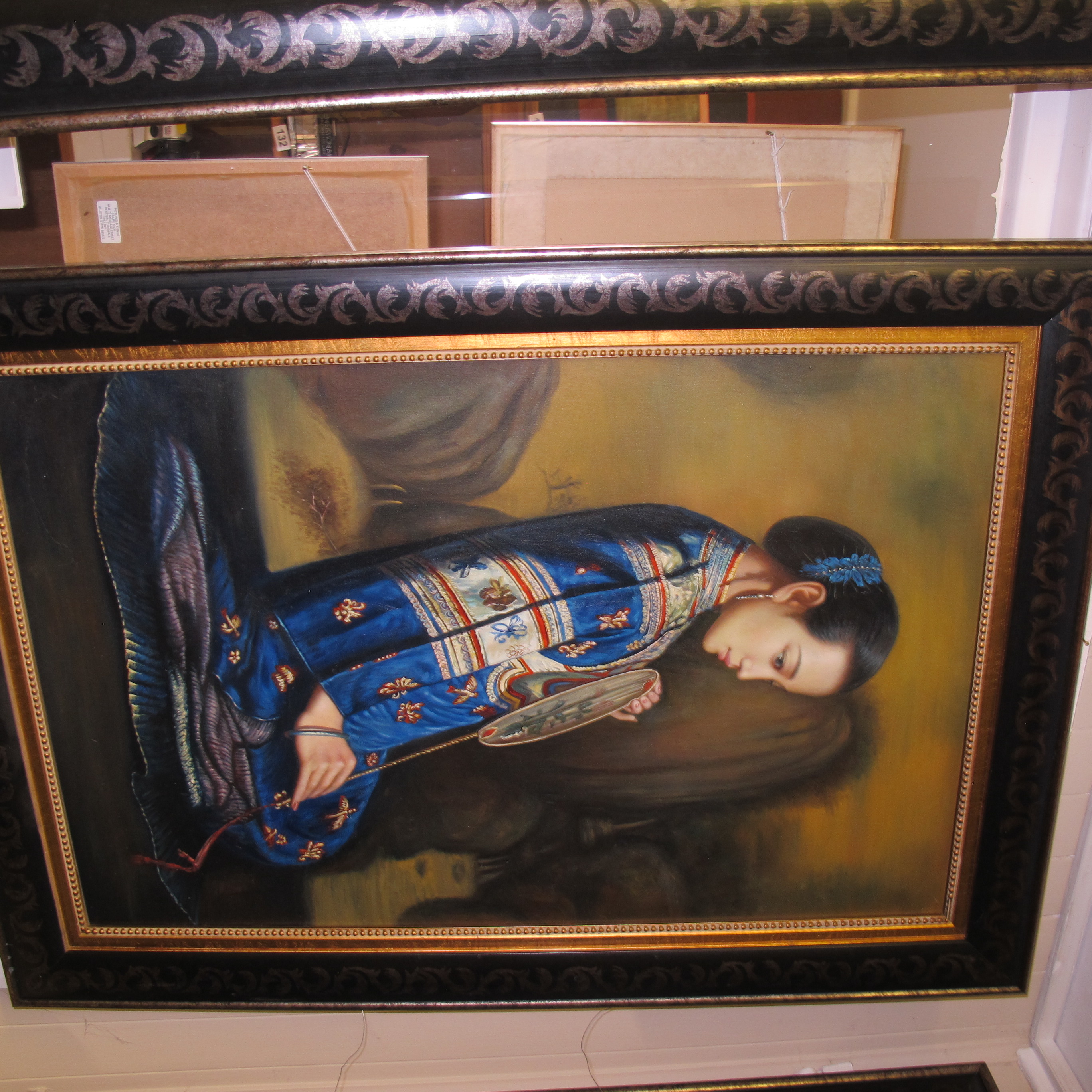 After Chen Yifei: Portrait of a Woman with a Fan, Oil on Canvas