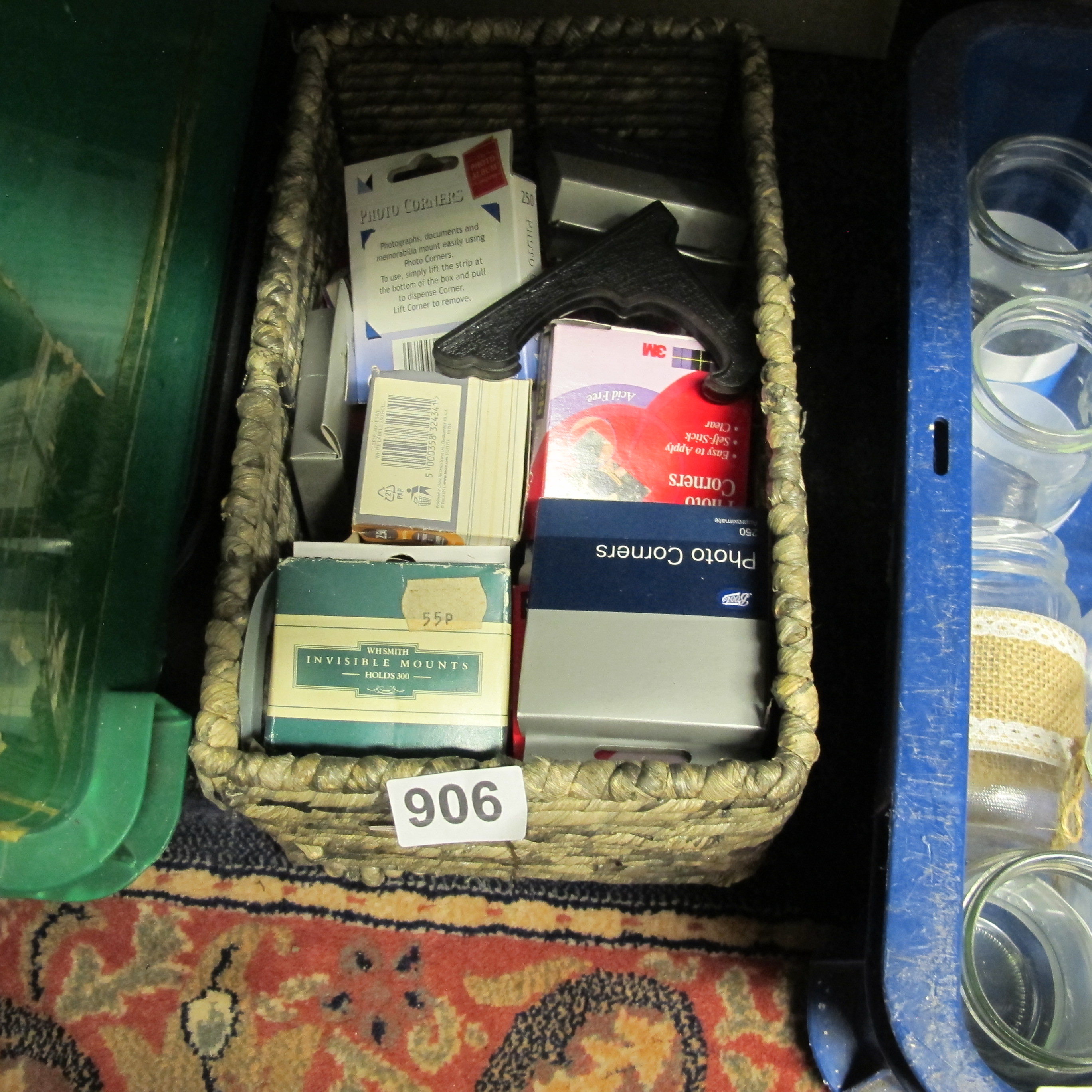 An Assortment of Photographic and Stationery Mounting Accessories in a Woven Basket