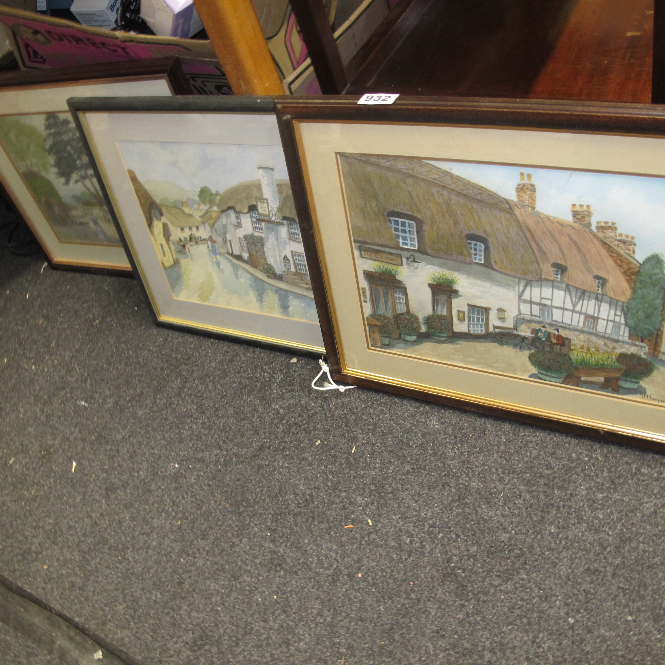 A Collection of Framed Watercolours and Prints Depicting English Village Scenes