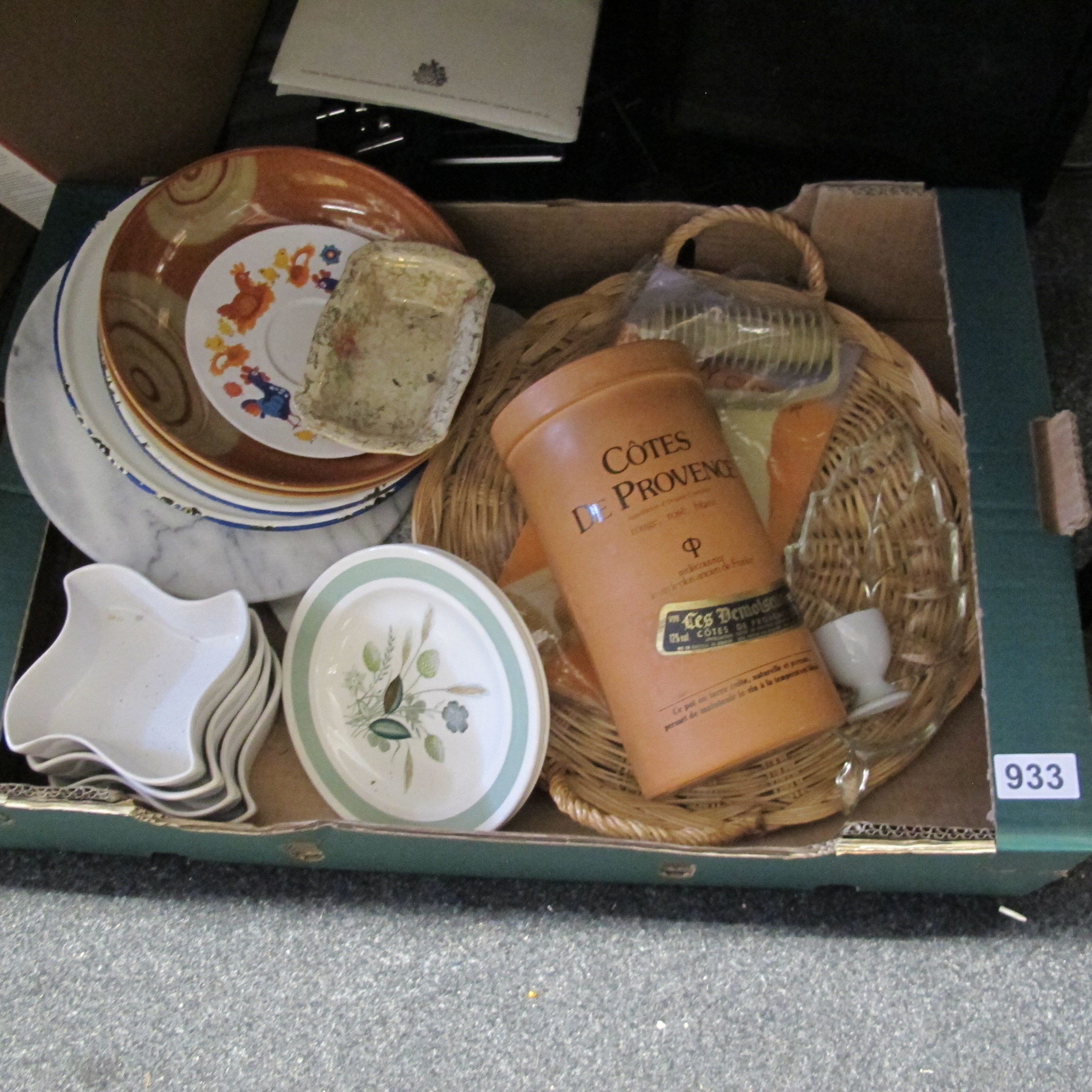 A Collection of Ceramic and Glass Household Items including a Terracotta Wine Cooler and Wicker Tray