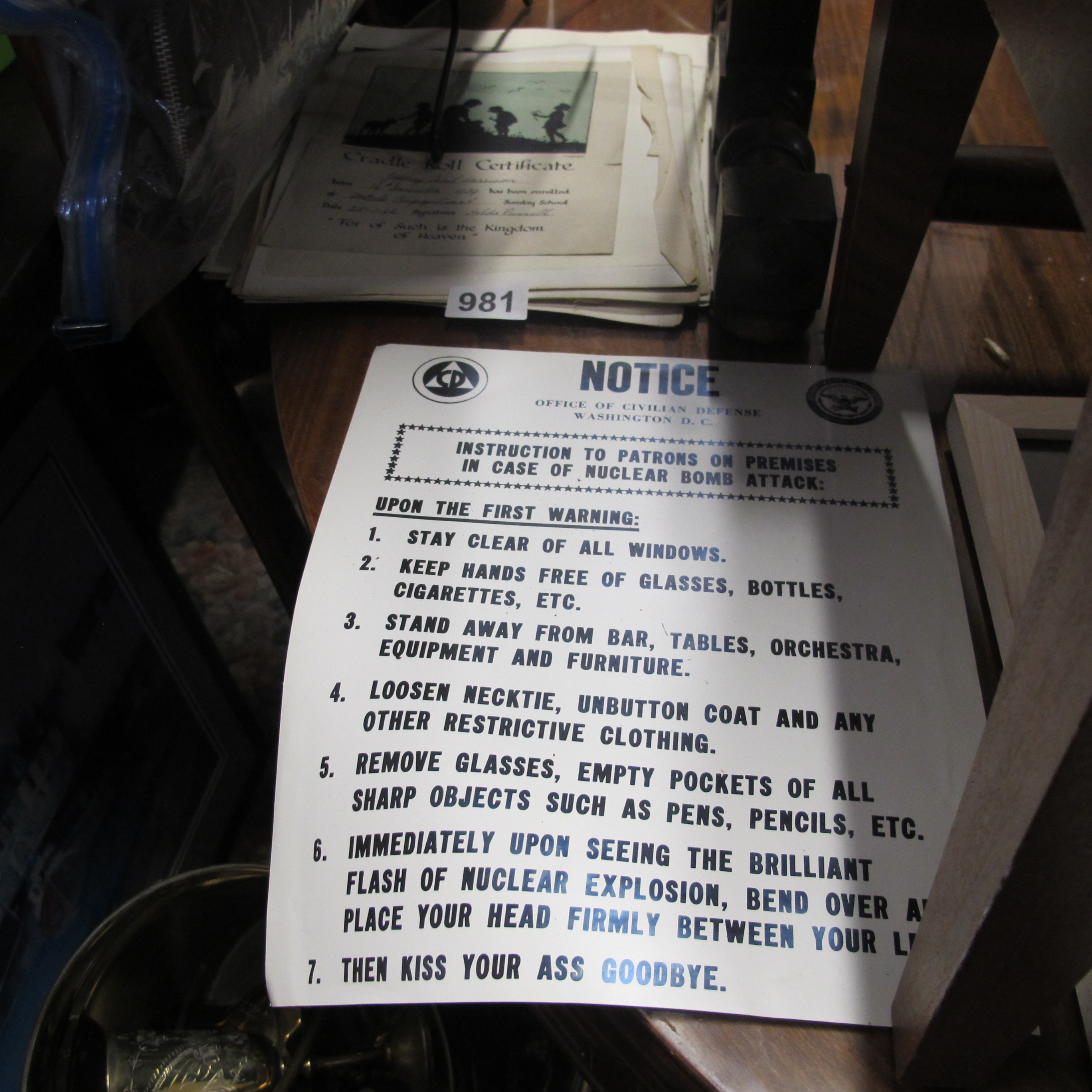 A Vintage Nuclear Bomb Notice Parody Poster and Assorted Ephemera