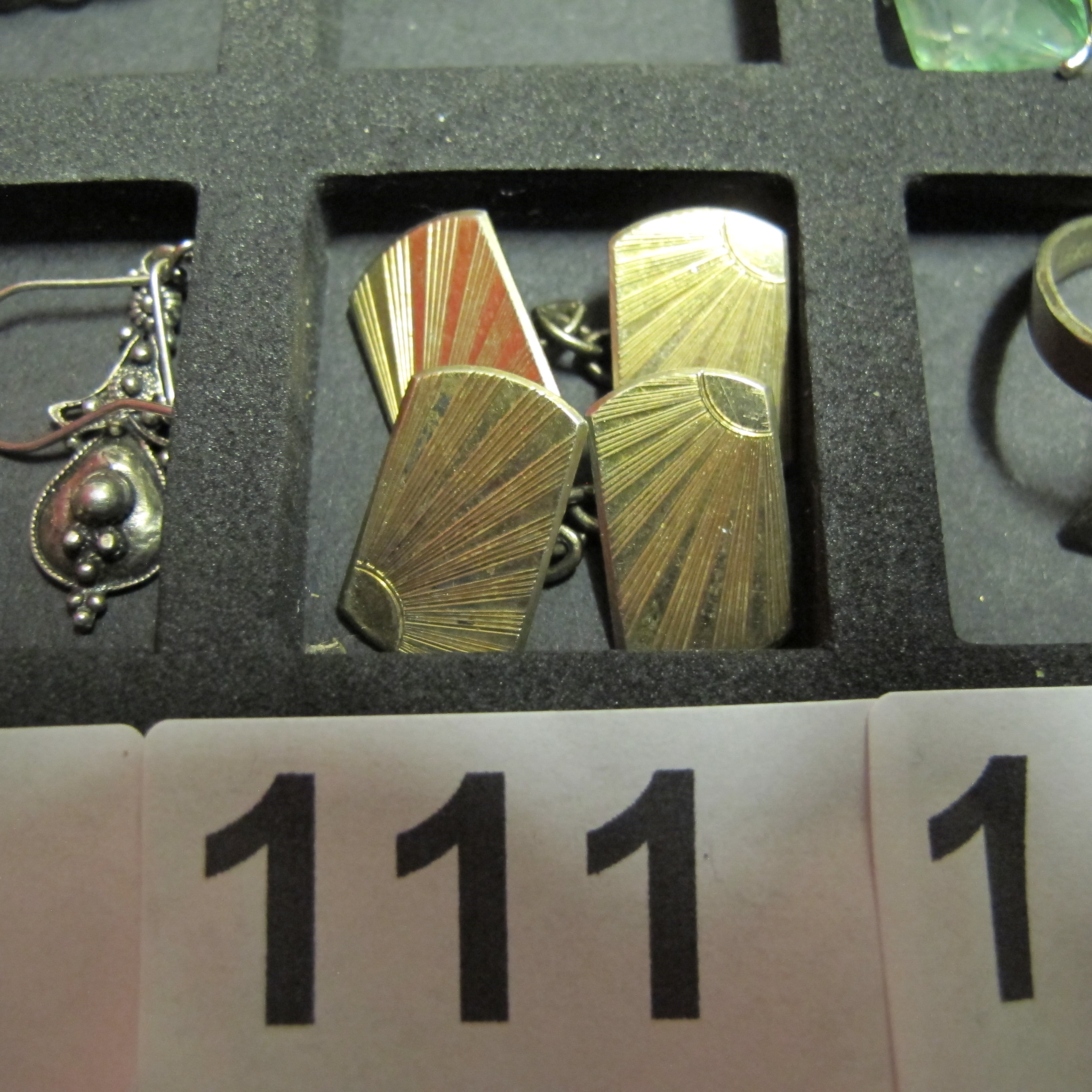A pair of Art Deco style enamel and yellow metal sunburst cufflinks