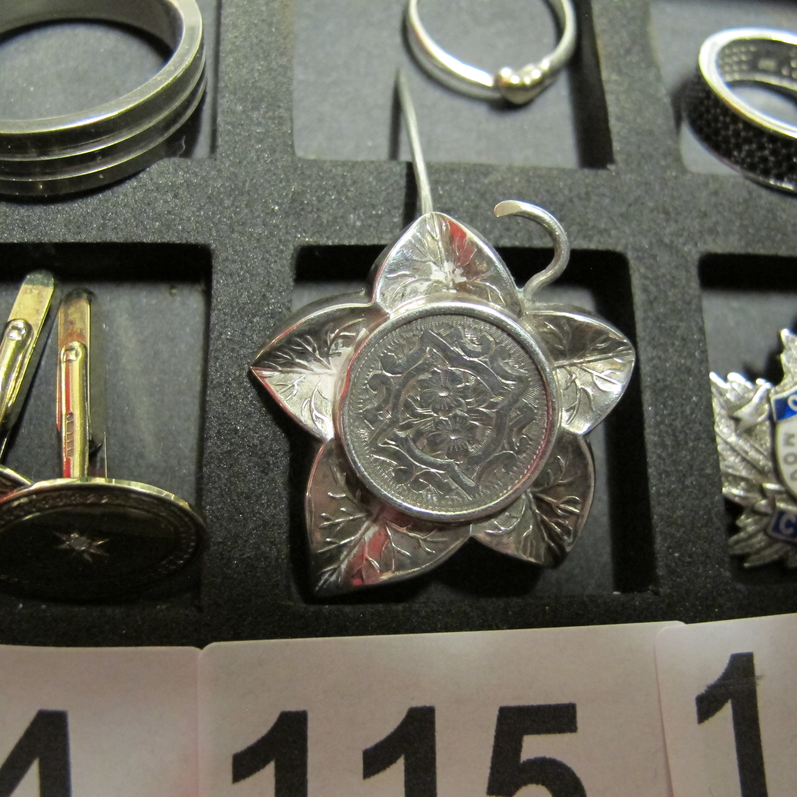 silver vintage flower brooch
