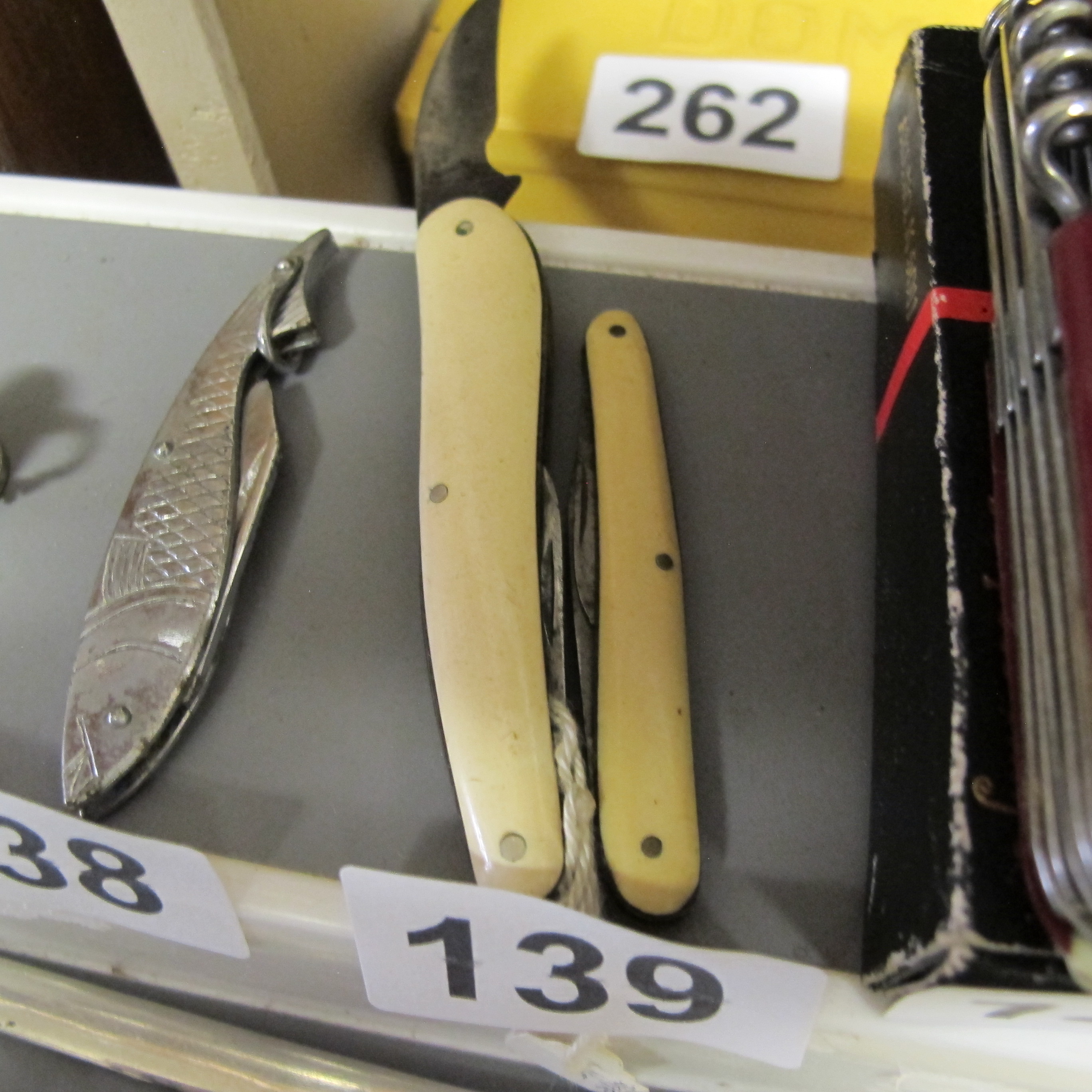 A Trio of Vintage Folding Pocket Knives Including a Novelty Fish Knife