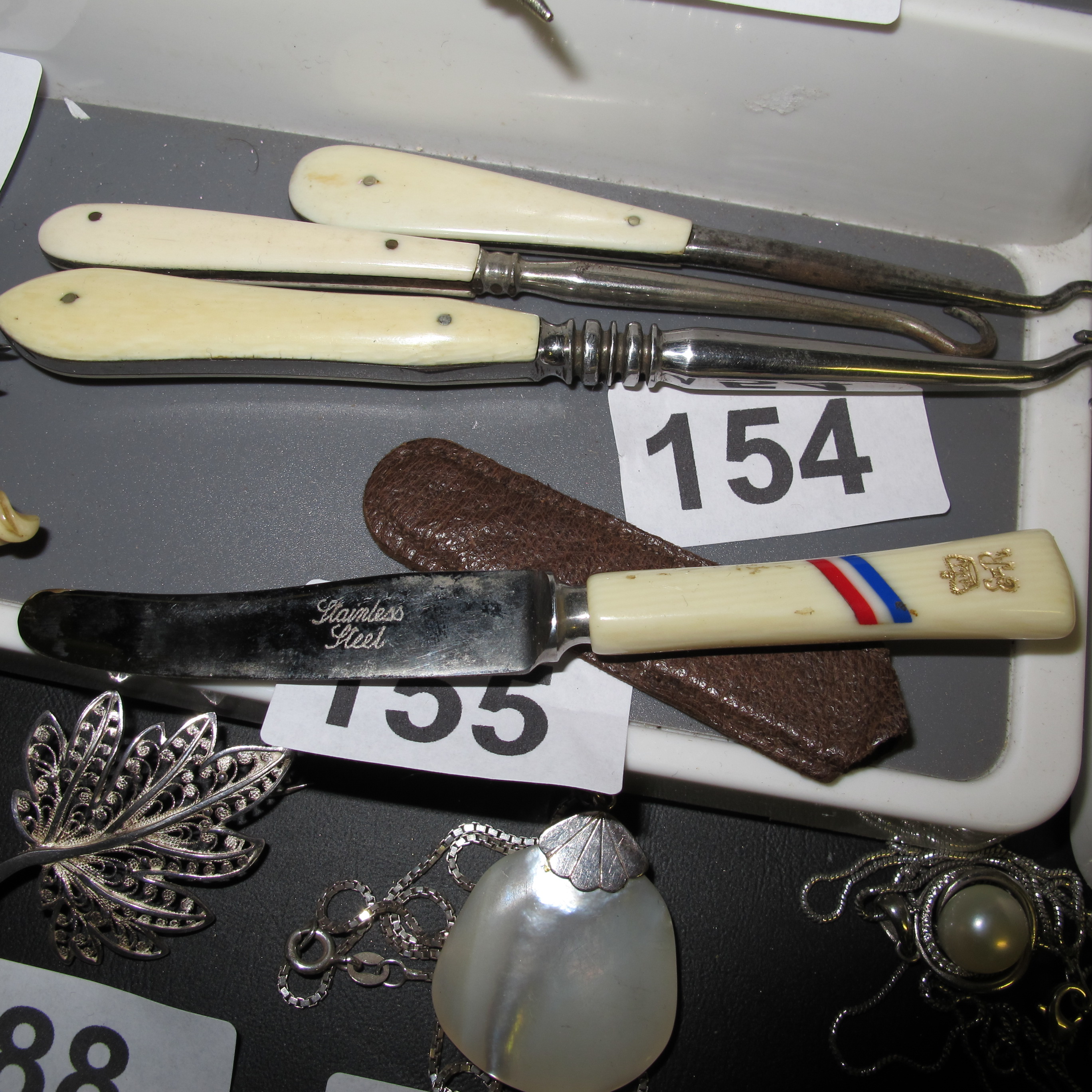 A Trio of Vintage Button Hooks and a Queen Elizabeth II Commemorative Knife
