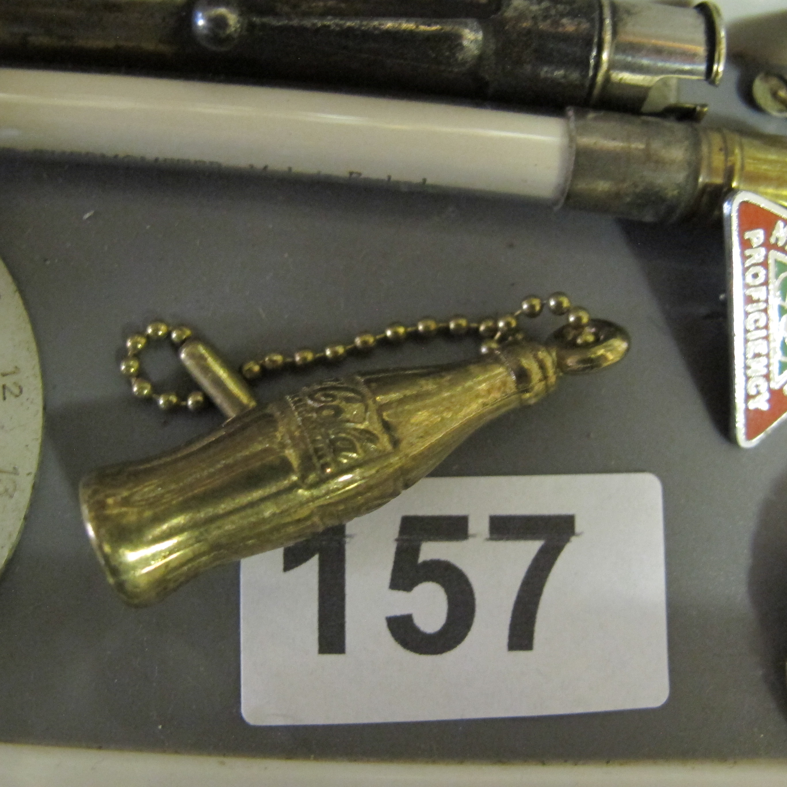 A vintage Coca-Cola miniature brass-toned metal bottle keychain