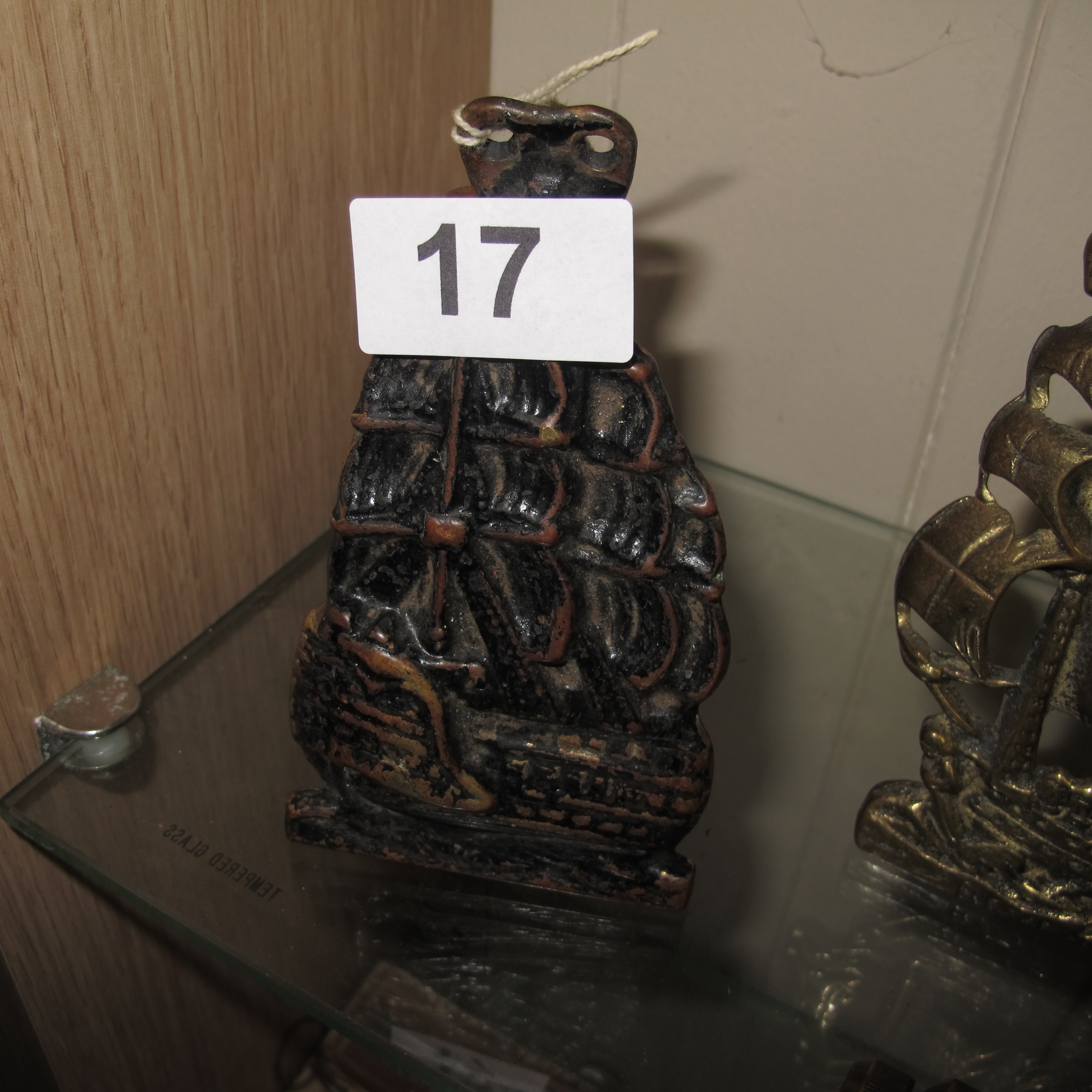 A 20th-century cast metal nautical-themed decorative ornament in the form of a galleon