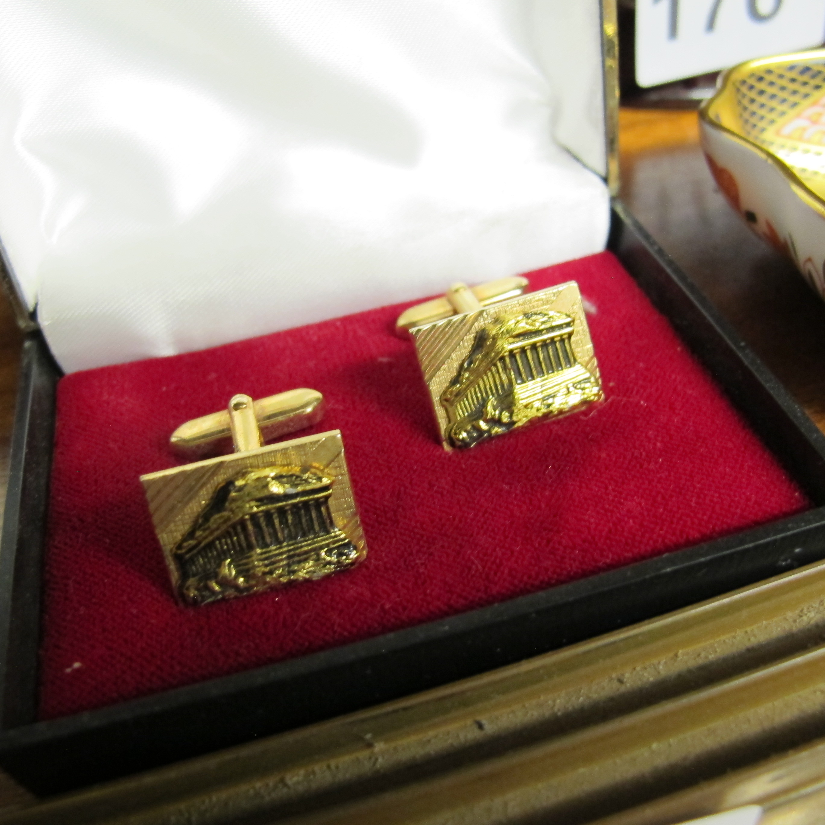 A Pair of Vintage Gold-Tone Copenhagen Denmark Temple Cufflinks