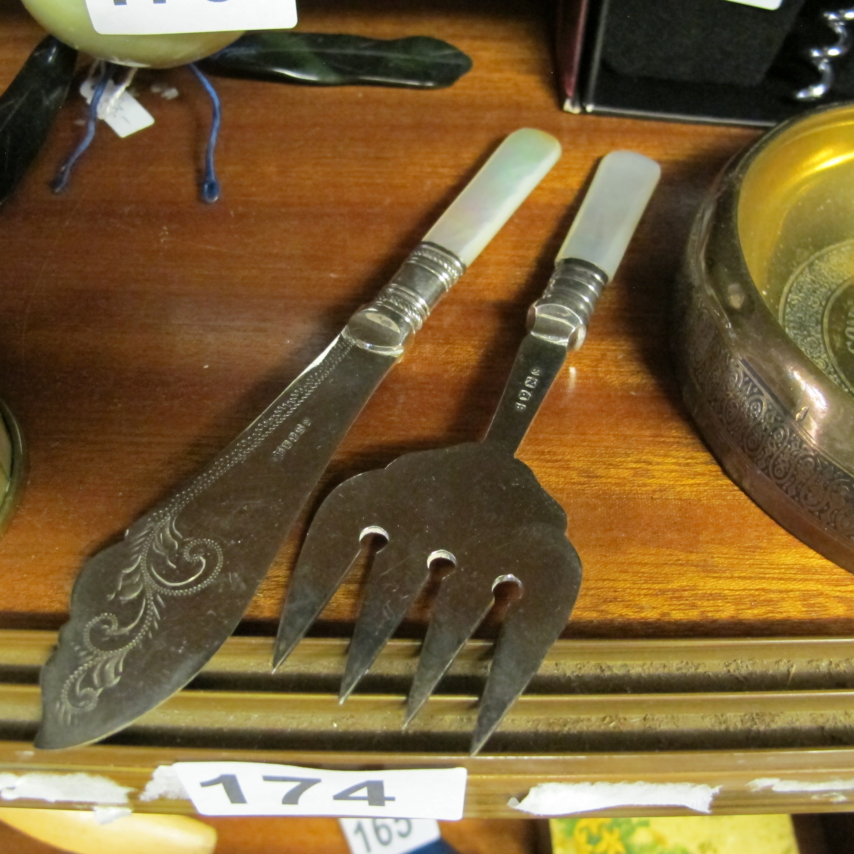 A Pair of Silver-Plated and Mother-of-Pearl Fish Servers