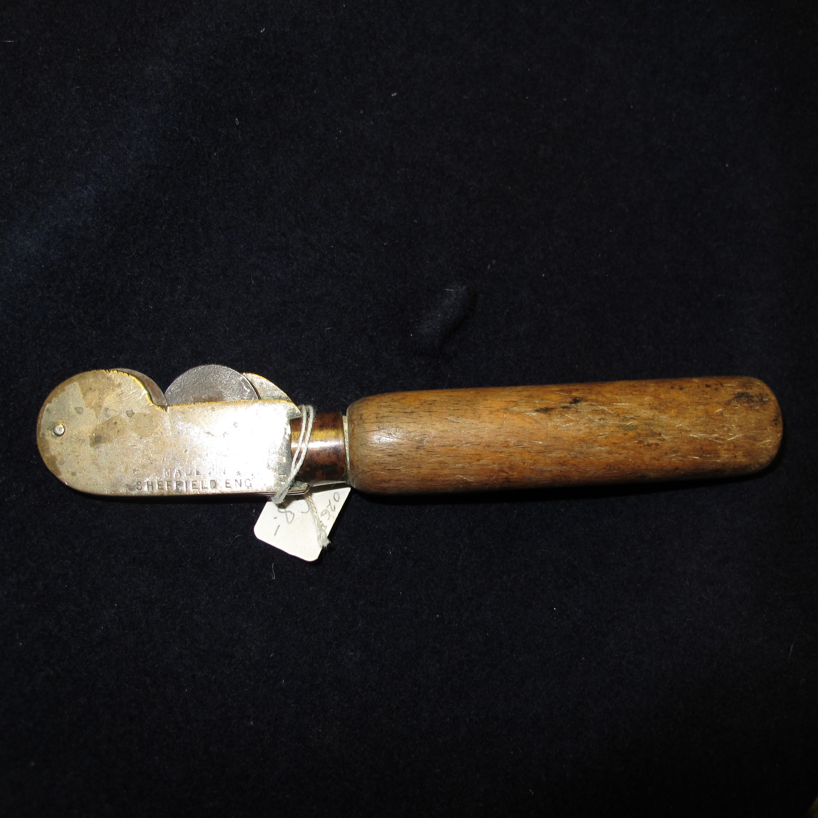 A Mid-20th Century Sheffield Made Handheld Knife Sharpener with Turned Wooden Handle