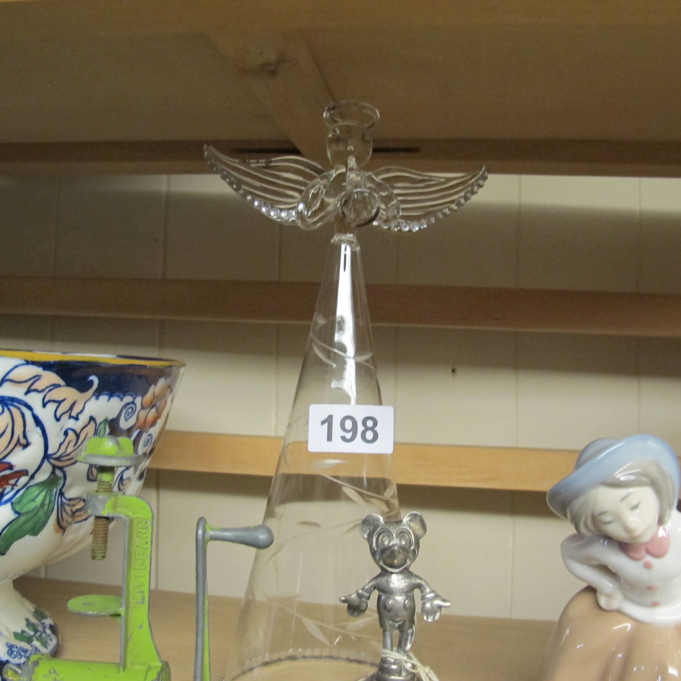 An Assortment of Decorative Items including an Etched Glass Angel and a Little Ann Bean Slicer