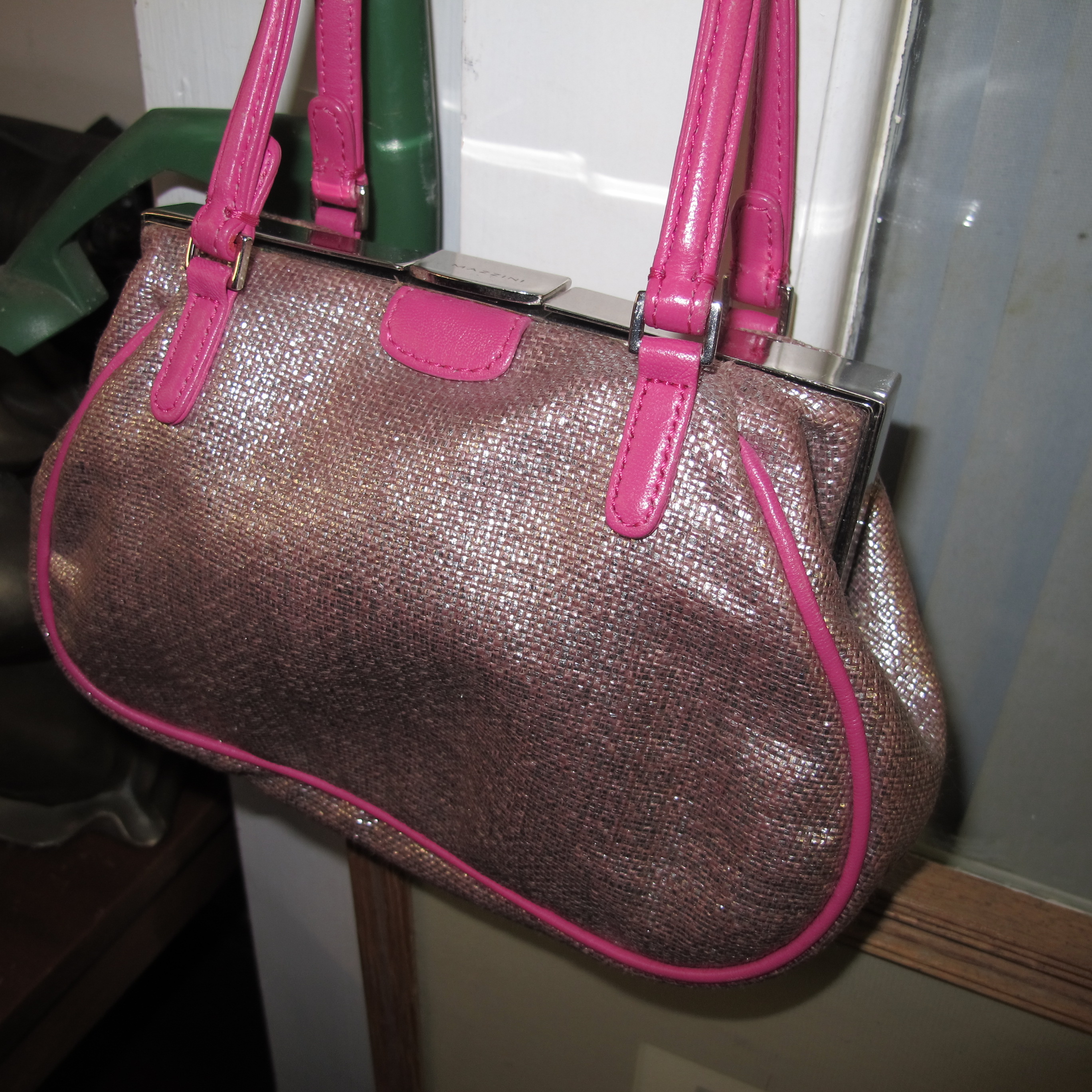 A Mazzini metallic woven-texture frame-top handbag with fuchsia trim